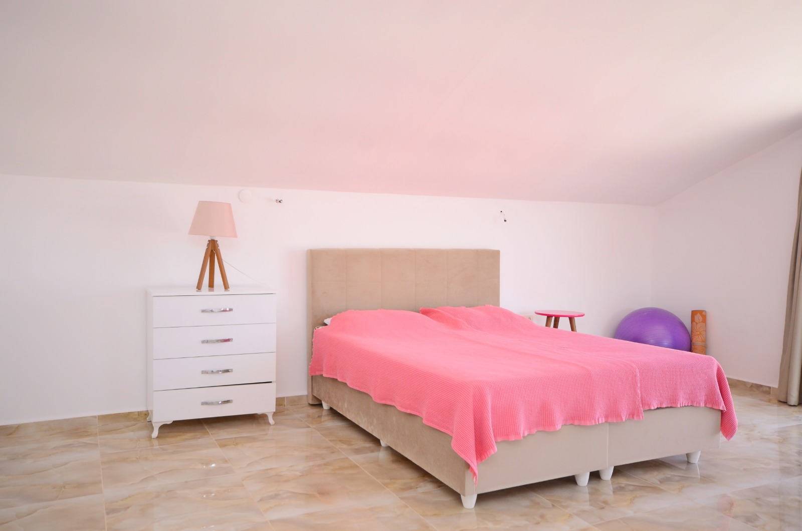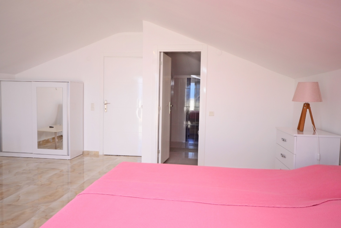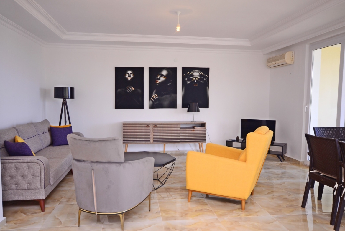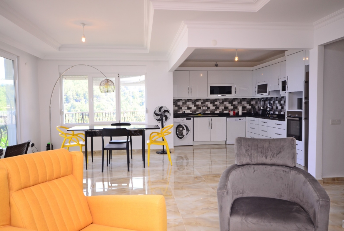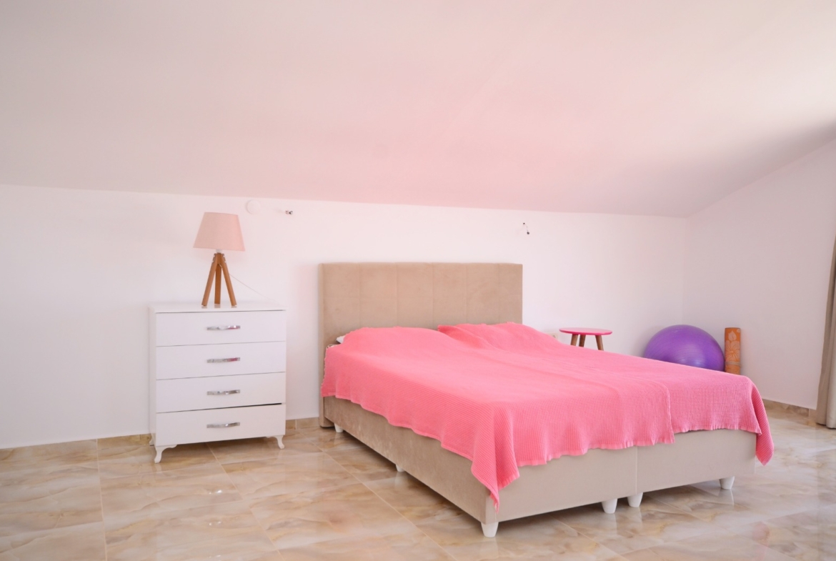Dieses komplett möblierte Kargicak Penthouse zu verkaufen befindet sich im Dorf Syedra. Es bietet 125 m² Wohnfläche auf zwei Etagen. Das Haus verfügt über 2 Schlafzimmer, 2 Badezimmer und 2 WCs. Es gibt 3 Balkone mit freiem Blick. Die Unterkunft befindet sich auf der 2. und 3. Etage. Im Inneren sind die Zimmer hell und gepflegt. Alle Möbel sind im Preis inbegriffen.