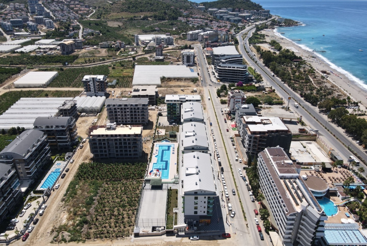 Die Wohnungsarten reichen von 1+1 und 2+1 bis hin zu großzügigen Duplex-Penthäusern. Die Wohnflächen liegen zwischen 50 m² und 195 m². Jede Wohnung verfügt über große Fenster und Balkone mit atemberaubendem Blick auf das Mittelmeer und das Taurusgebirge. Die Ausstattung umfasst Designerküchen und -bäder, Granitböden sowie eine vollständige Klimaanlage.