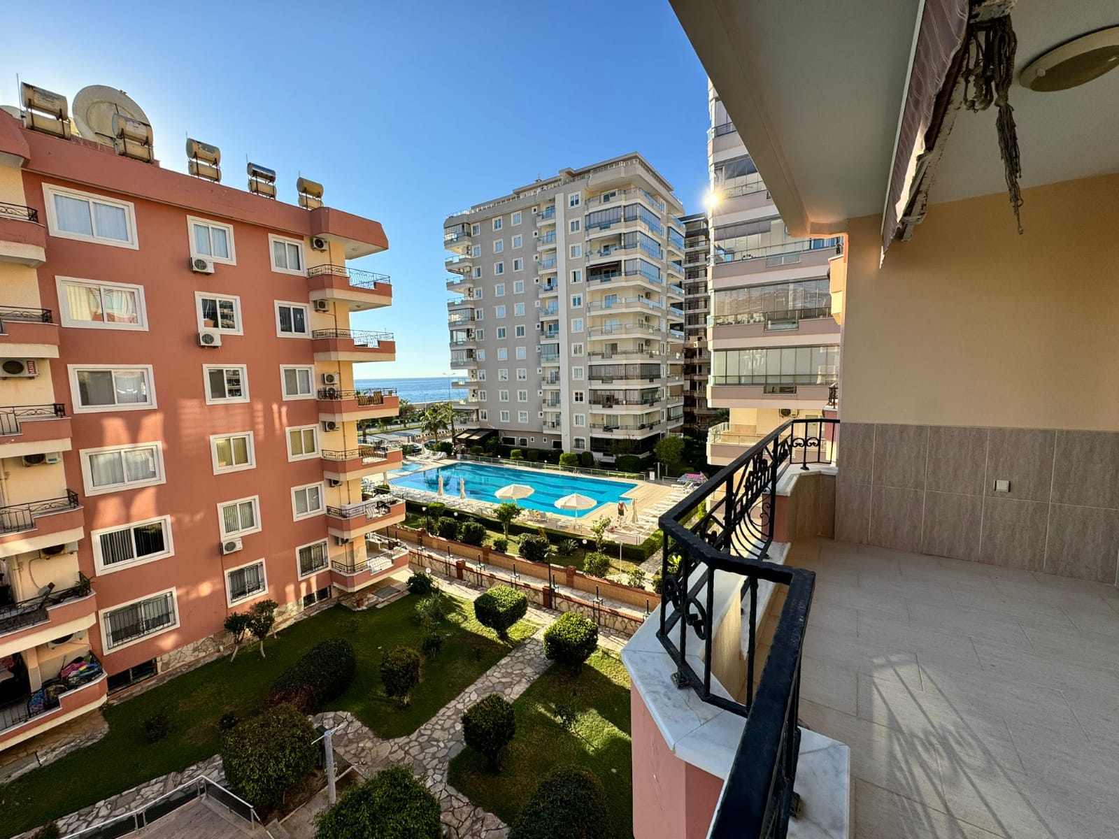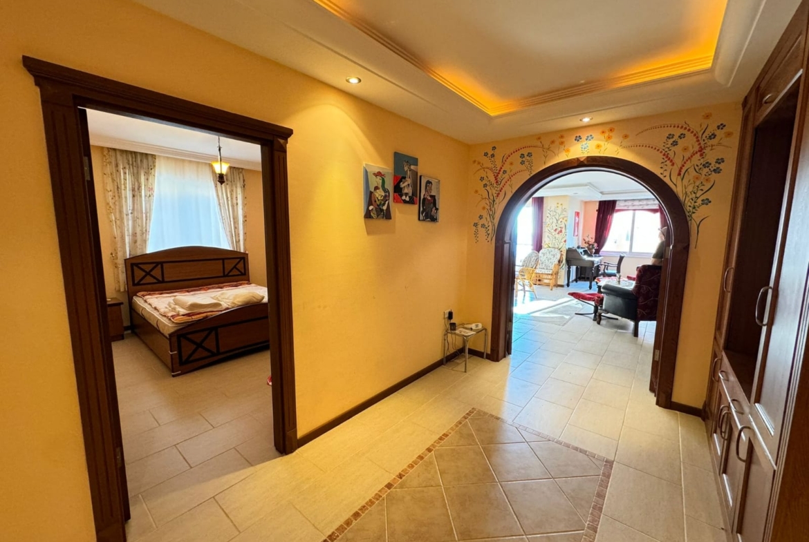 Dieses Meerblick-Alanya-Anwesen in Alden 1 Residence ist ein seltenes Juwel am Strand in Mahmutlar. Die 3+1-Wohnung, 165 m² im 3. Stock, ist vollständig mit modernen Möbeln möbliert. Es verfügt über drei Schlafzimmer, zwei Badezimmer mit WC und zwei Balkone mit direktem Meerblick (deniz manzaralı). Der Komplex umfasst ein offenes Schwimmbad, einen Parkplatz, einen Generator, Kamelya, einen Hausmeister vor Ort (görevli) und 24/7-Sicherheit. Besonderes Merkmal: private Unterführung (alt geçit) zum Strand – echter Zugang zu denize sıfır. Gebaut im Jahr 2018.