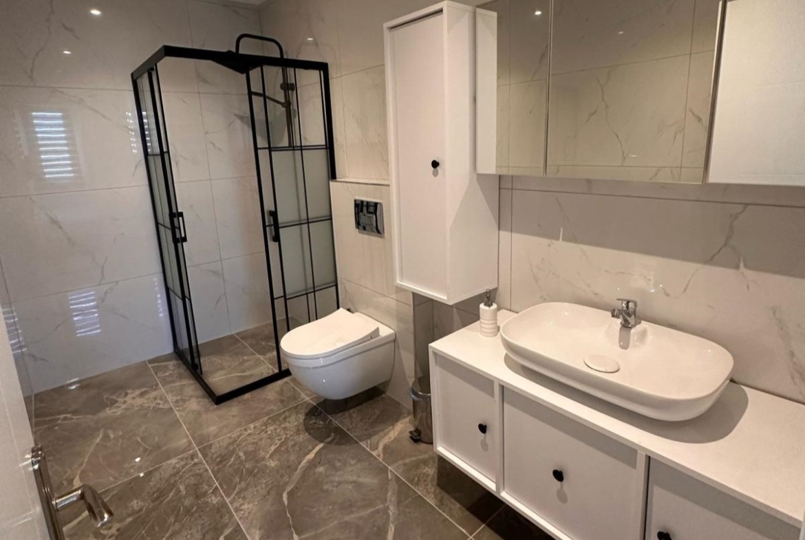 ویلای فروشی در کارگیجاک – این ویلای دوقلو و مبله ۳+۱ در پروژه گلد سیتی واقع در کارگیجاک، دارای ۱۵۰ متر مربع زیربنا، آشپزخانه اُپن، ۳ سرویس بهداشتی، ۲ حمام و یک حمام مستر است. تمام دربها و سرویسهای بهداشتی بازسازی شدهاند و حالوهوای مدرن و تازهای به فضا بخشیدهاند.