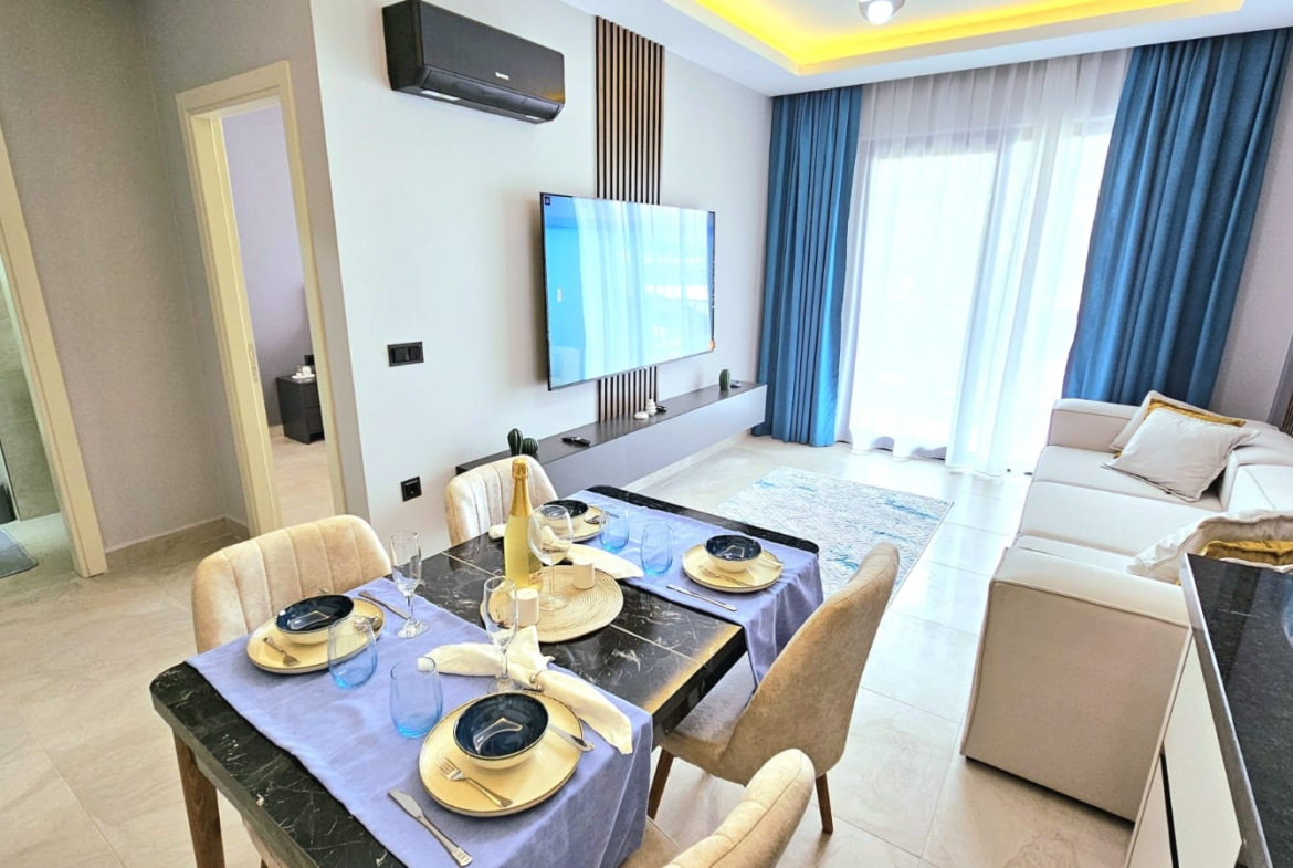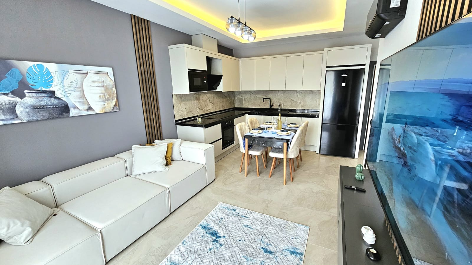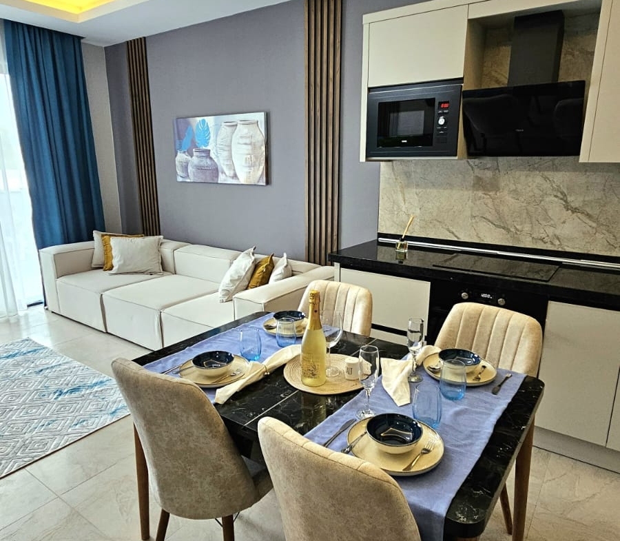 این آپارتمان مبله با منظره استخر محموتلار دارای ژنراتور، پارکینگ سایت، آسانسور و سرایداری در محل است. از سونا لذت ببرید یا در کنار استخر استراحت کنید. علاوه بر این، مرکز تناسب اندام و اتاق بخار سلامتی را افزایش می دهند. مرکز پر جنب و جوش محموتلار، با مغازه ها و کافه ها، در این نزدیکی قرار دارد. ایده آل برای خانه یا سرمایه گذاری، این آپارتمان مبله با منظره استخر محموتلار ترکیبی از طراحی مدرن با جذابیت ساحلی در منطقه پرطرفدار آلانیا است.