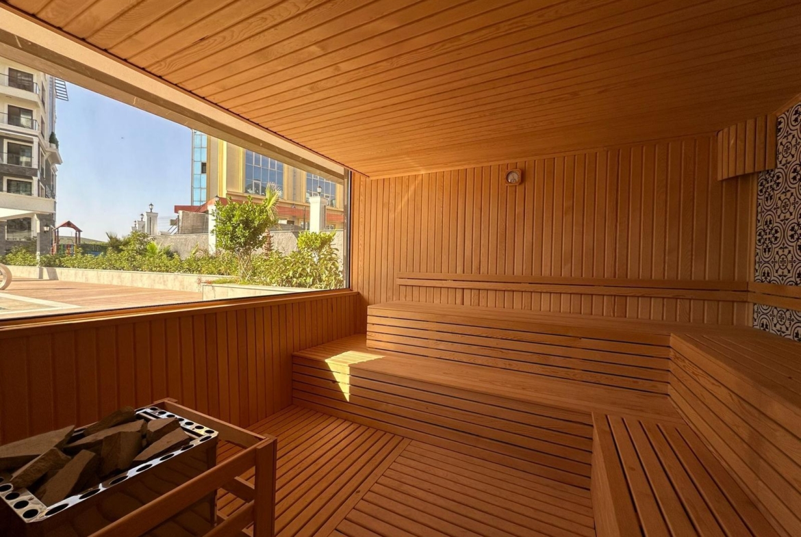 This Alanya center modern apartment boasts a generator, open and indoor parking, and 24/7 security. Enjoy the sauna or dine at the on-site restaurant. Moreover, the fitness center and children’s pool add family appeal. Alanya’s vibrant shops and cafes are steps away. Perfect for a home or investment, this Alanya center modern apartment combines contemporary design with central charm in Alanya’s lively hub.
