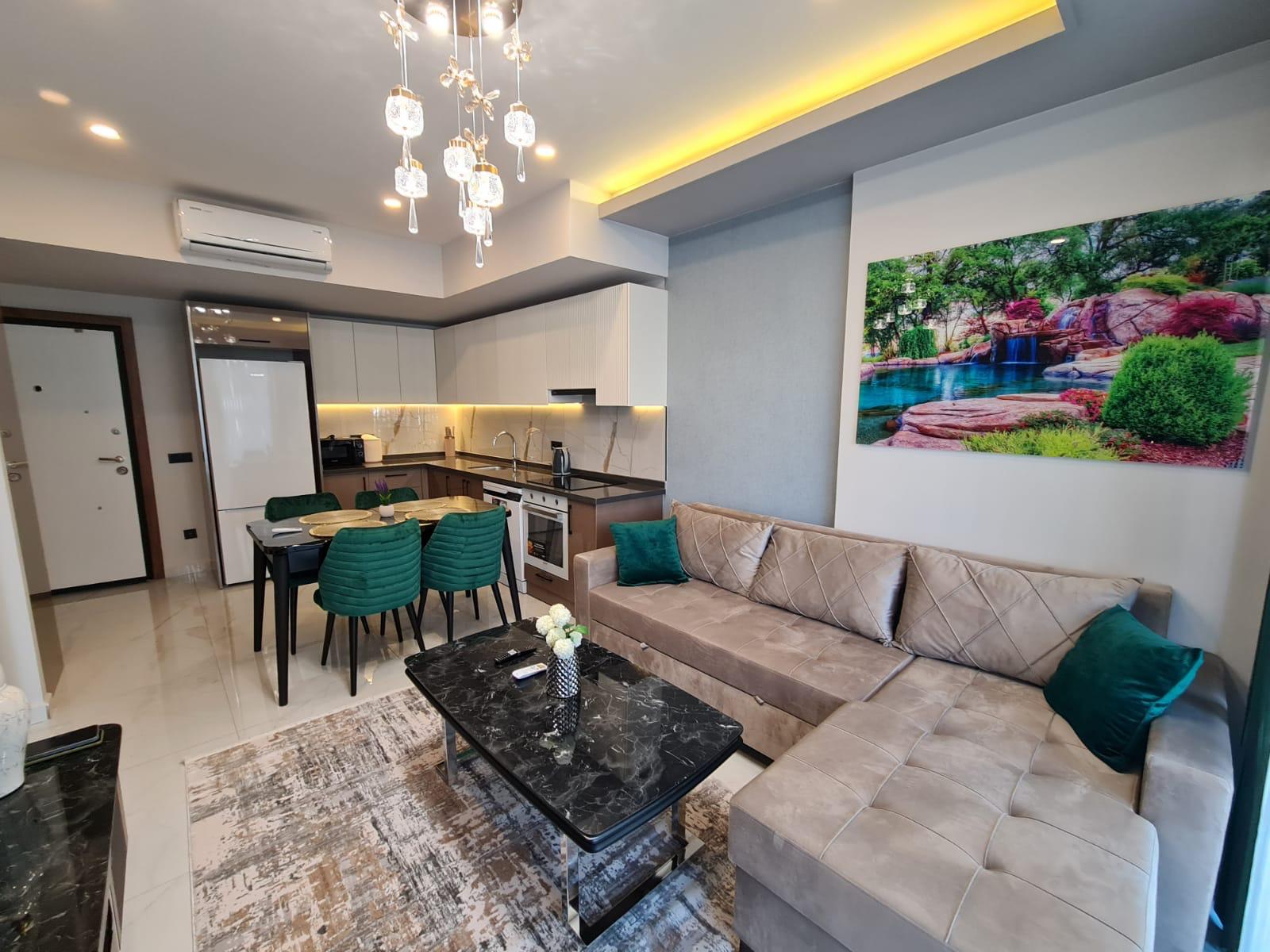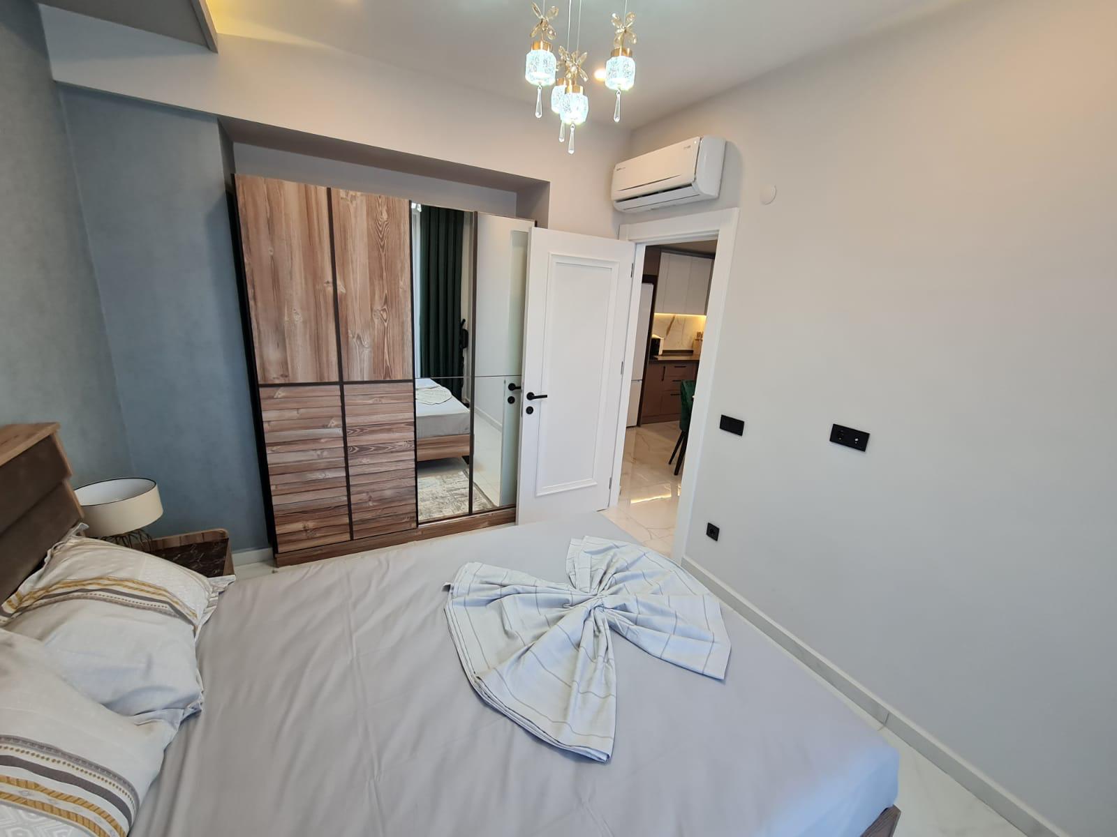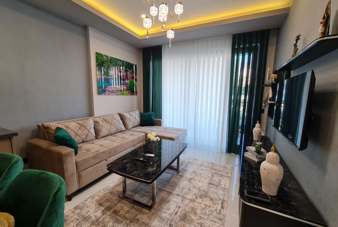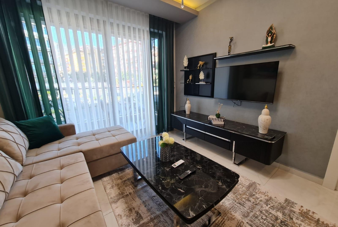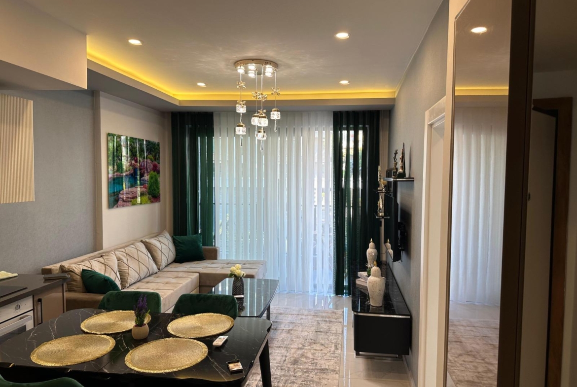 This Alanya center modern apartment in Royal Towers offers convenience in Alanya’s bustling center. The 1+1 apartment, spanning 55 m² on the 1st floor of A-Block in a 9-story building, includes one bedroom, one bathroom with WC, and a balcony. It’s unfurnished, ready for your style. The complex features an open pool, indoor pool, children’s pool, fitness center, sauna, hammam, restaurant, pool bar, gazebo relaxation areas, barbecue zone, and children’s playground. Built in 2024 with a low 65€ monthly maintenance fee, this Alanya center modern apartment is 800 meters from the sea. Gazipasa Airport is 40 km away, and Antalya Airport is 125 km.
