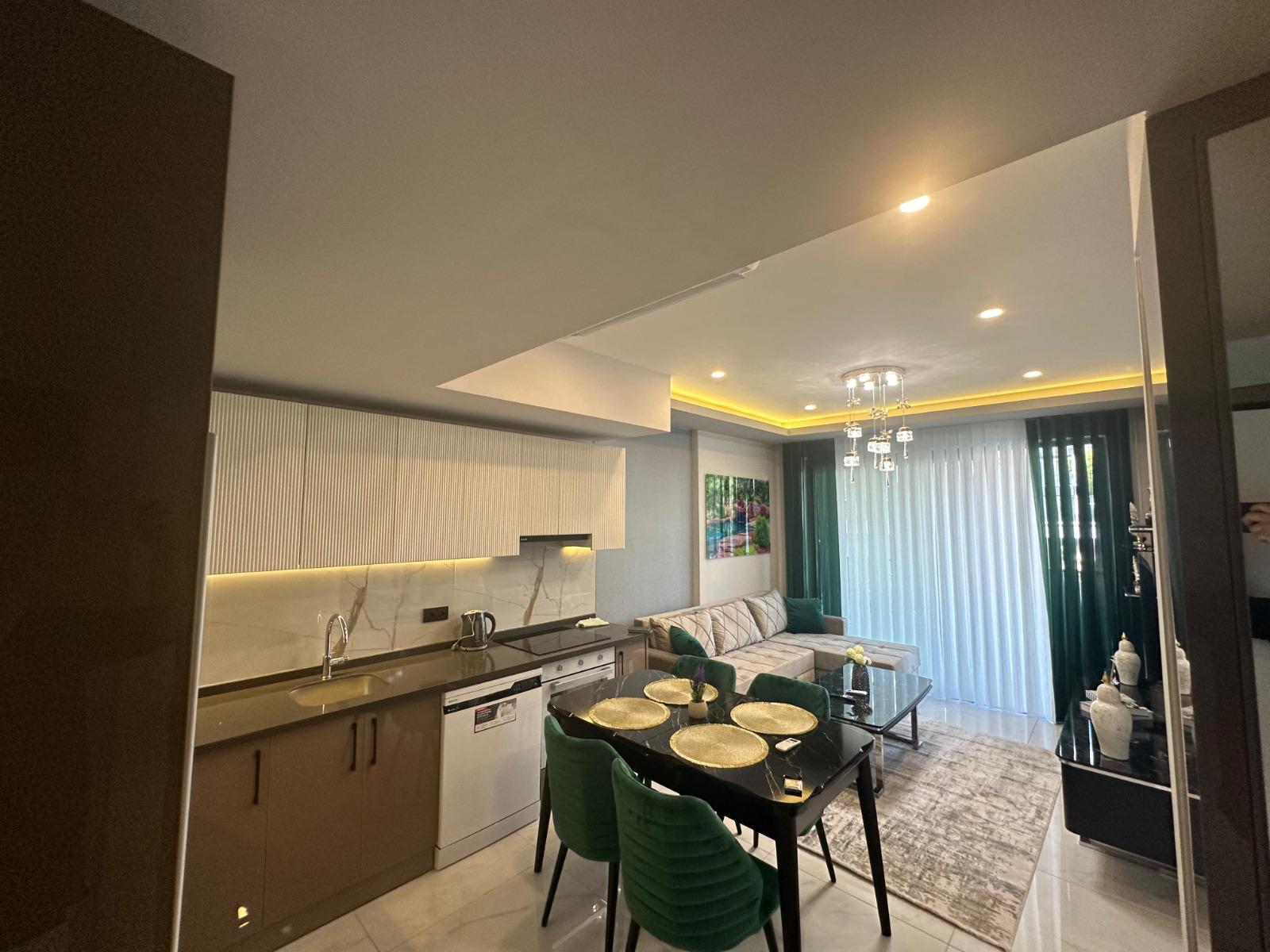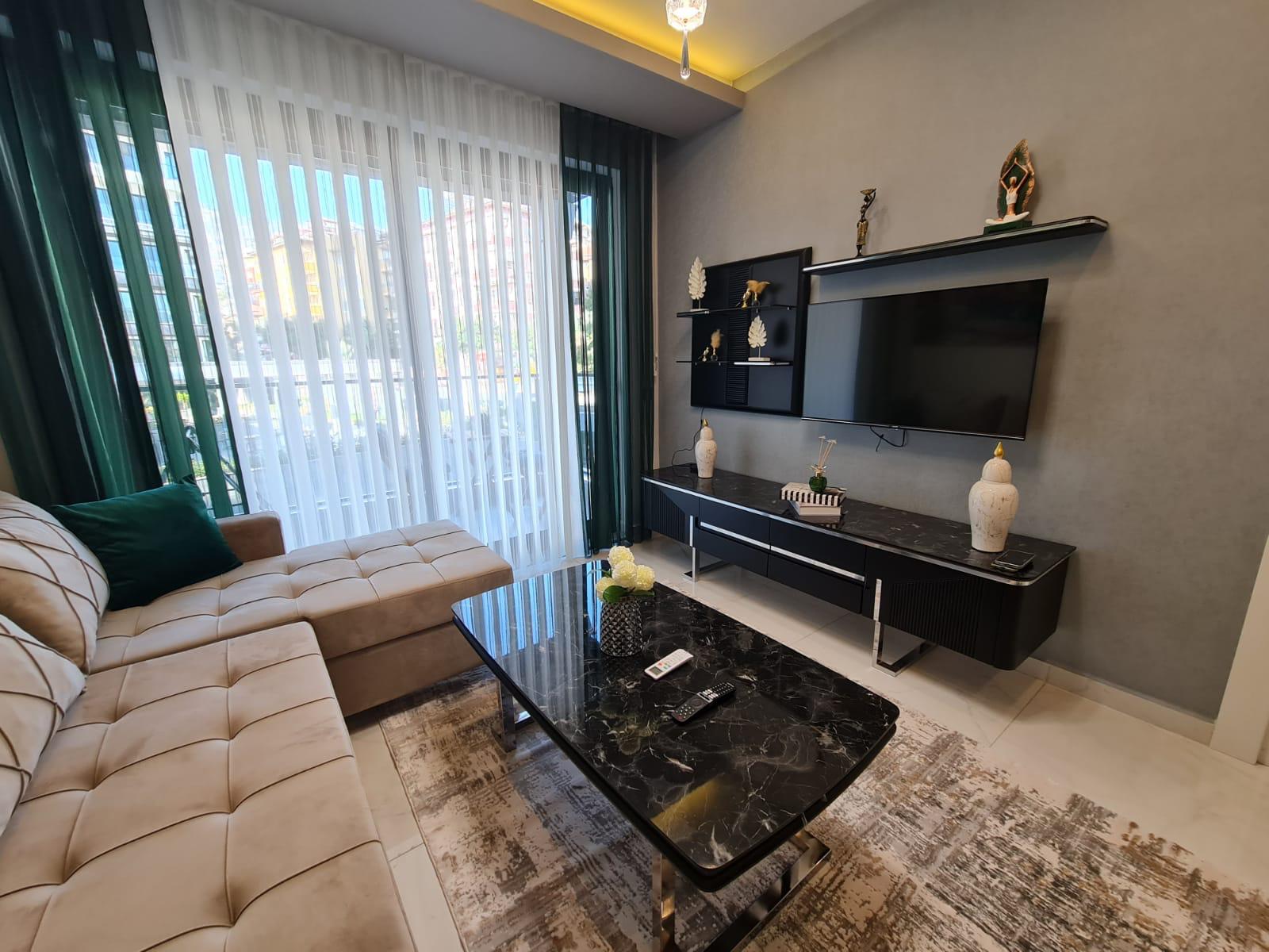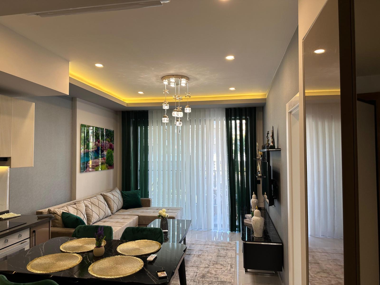 This Alanya center modern apartment in Royal Towers offers convenience in Alanya’s bustling center. The 1+1 apartment, spanning 55 m² on the 1st floor of A-Block in a 9-story building, includes one bedroom, one bathroom with WC, and a balcony. It’s unfurnished, ready for your style. The complex features an open pool, indoor pool, children’s pool, fitness center, sauna, hammam, restaurant, pool bar, gazebo relaxation areas, barbecue zone, and children’s playground. Built in 2024 with a low 65€ monthly maintenance fee, this Alanya center modern apartment is 800 meters from the sea. Gazipasa Airport is 40 km away, and Antalya Airport is 125 km.