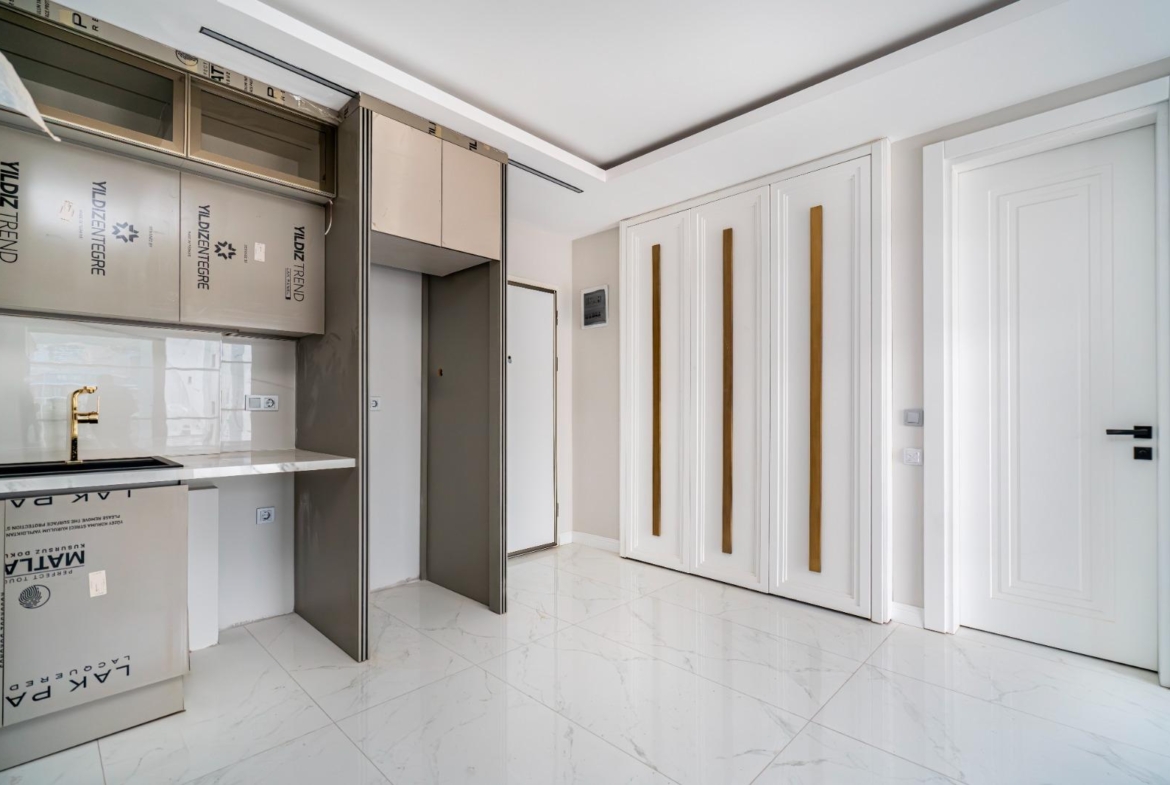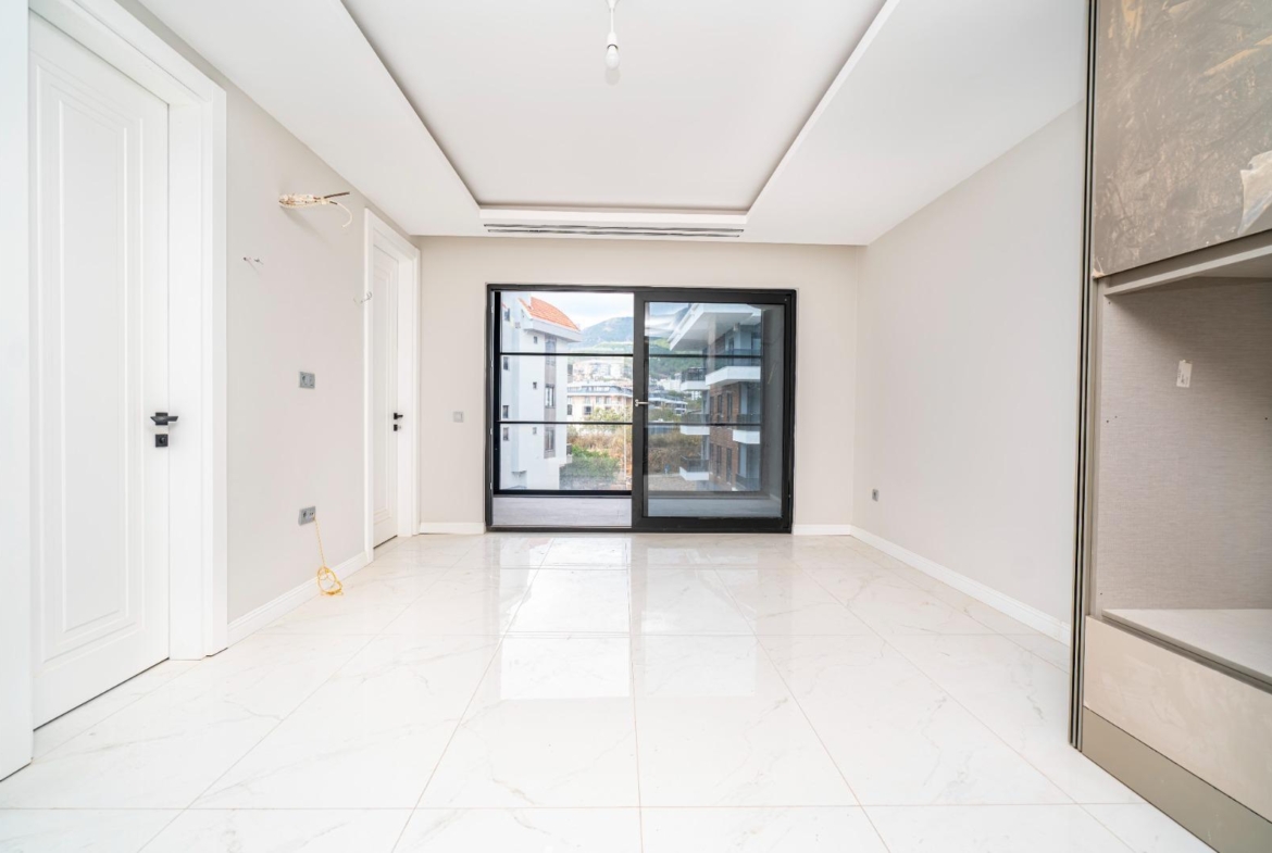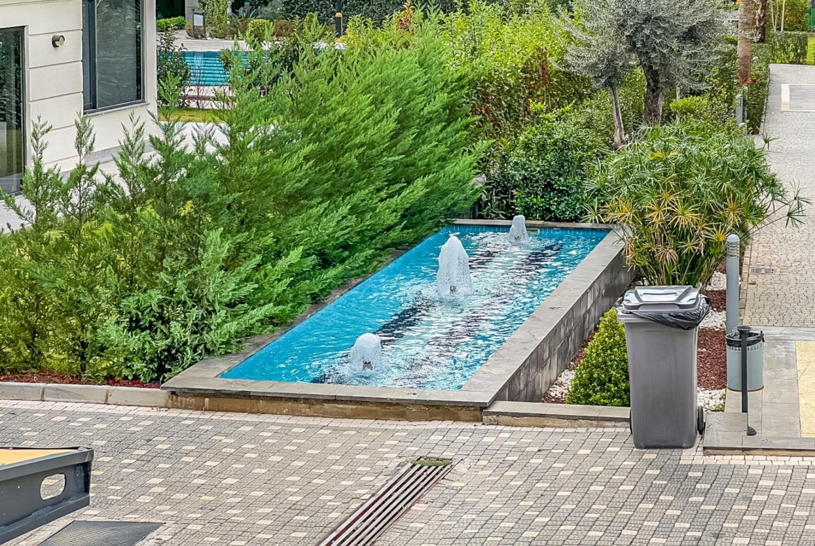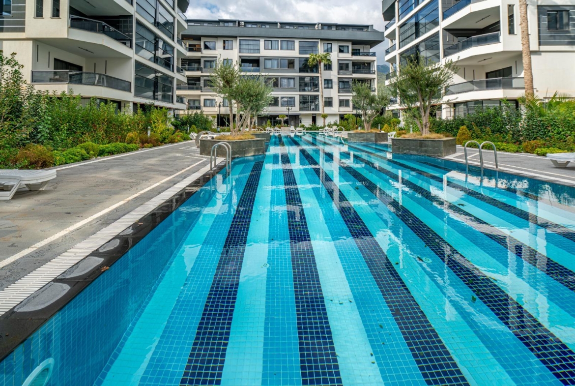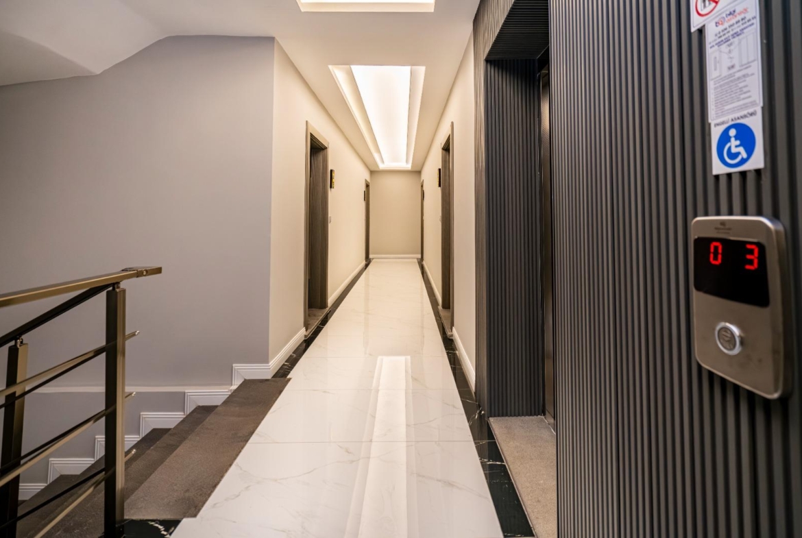 The complex offers outstanding features: a 300 m² pool, water slide, heated jacuzzi, massage rooms, Turkish bath, sauna, fitness room, cinema, kids’ playroom, and bar. Sports lovers will enjoy tennis, basketball, volleyball courts, and a gym. There is 24/7 security, cameras, a generator, and parking for 62 cars. This Alanya Oba flat sale is priced for quick action—ideal for investment or vacation living.