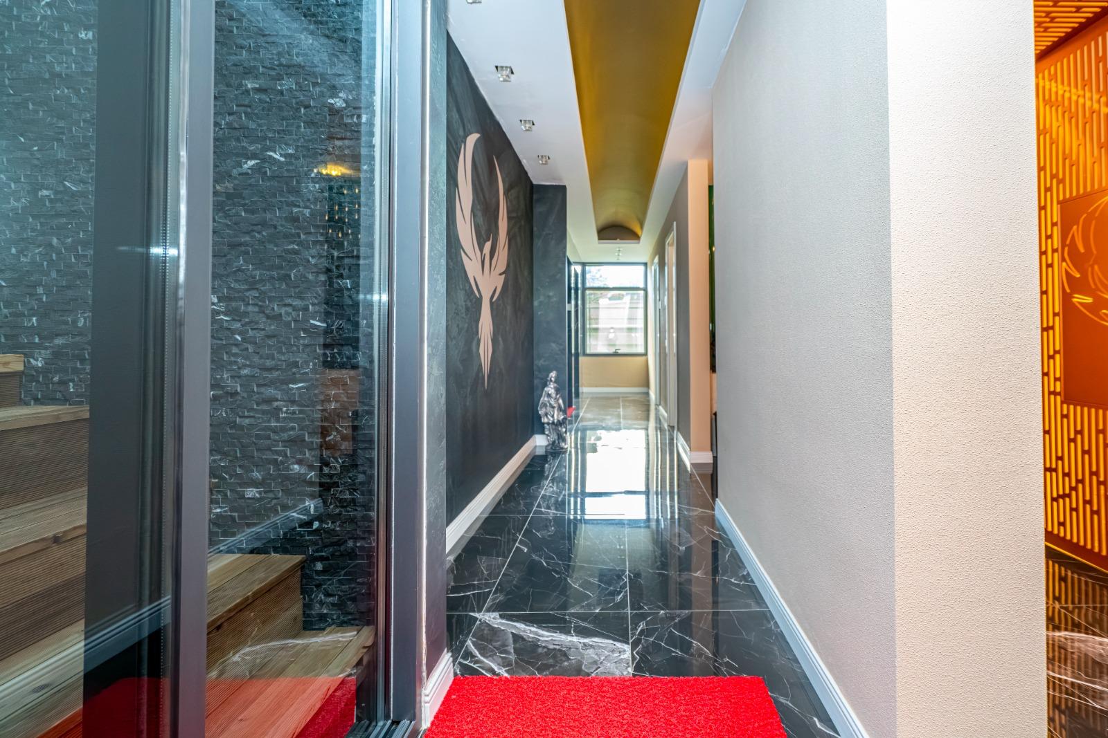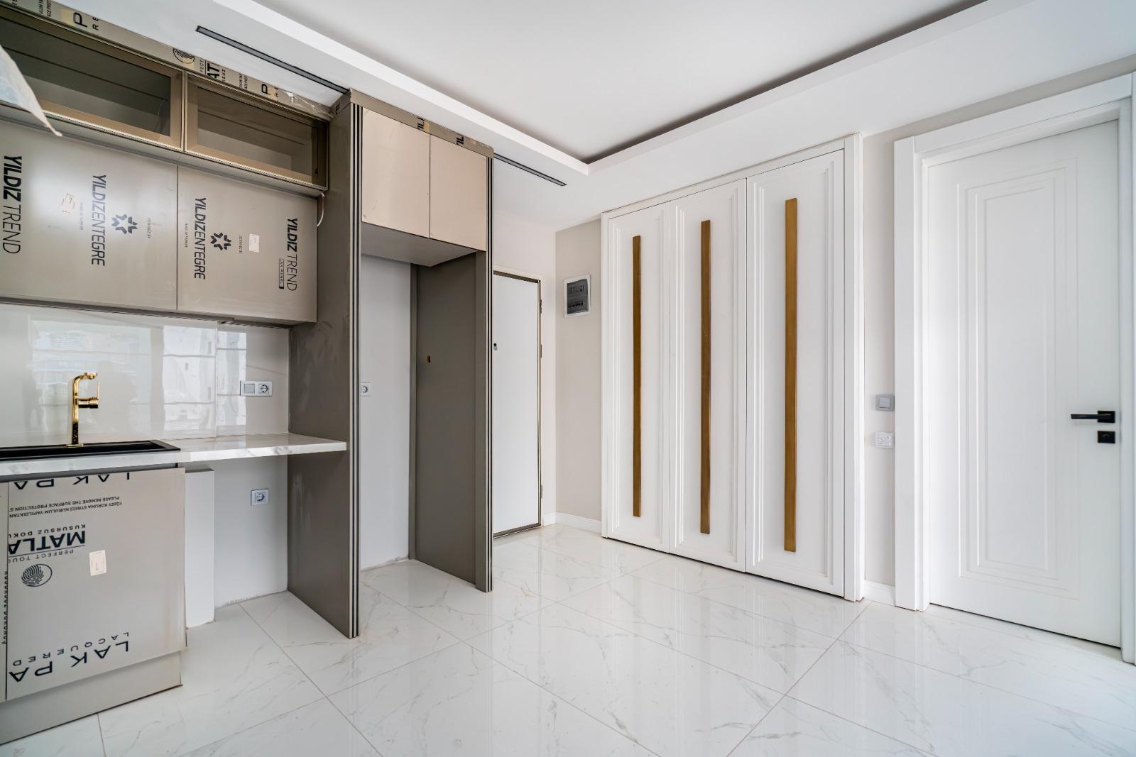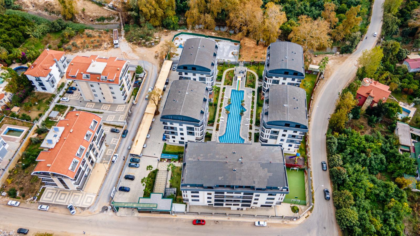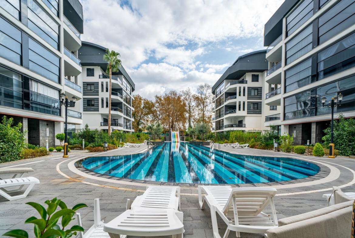 The complex offers outstanding features: a 300 m² pool, water slide, heated jacuzzi, massage rooms, Turkish bath, sauna, fitness room, cinema, kids’ playroom, and bar. Sports lovers will enjoy tennis, basketball, volleyball courts, and a gym. There is 24/7 security, cameras, a generator, and parking for 62 cars. This Alanya Oba flat sale is priced for quick action—ideal for investment or vacation living.
