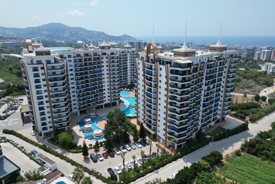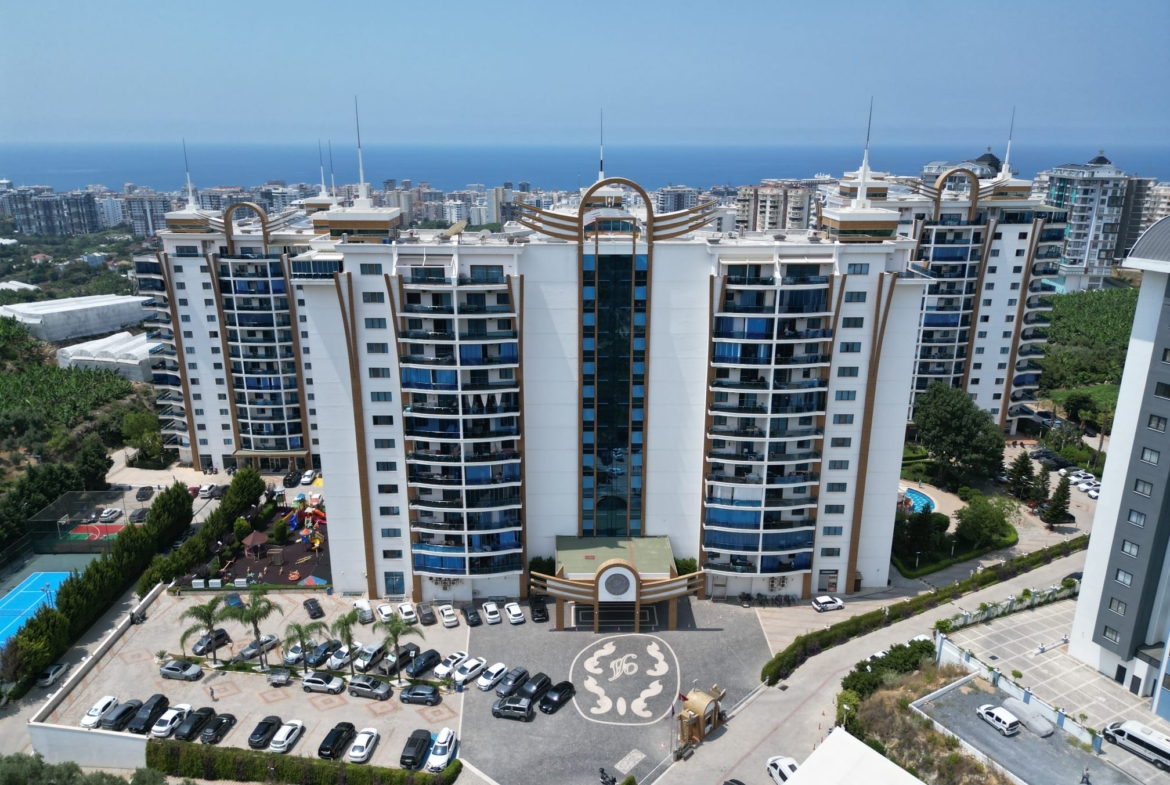 This Alanya real estate gem in Azura Park offers one of the most complete residential experiences in Mahmutlar. The 3+1 apartment, 150 m² on the 2nd floor, comes fully furnished with modern furniture. It features three bedrooms, two bathrooms with WCs, two balconies, and a spacious living area. The massive 38.000 m² site hosts a true 5-star resort-style complex with open & indoor pools, hammam, sauna, fitness center, tennis court, bowling alley, cinema, market, café, restaurant, children’s playgrounds, reception, open & closed parking, and 24/7 security. Built in 2012 (13 years old), this Alanya real estate property is 1.5 km from the sea. Gazipasa Airport 30 km · Antalya Airport 140 km.