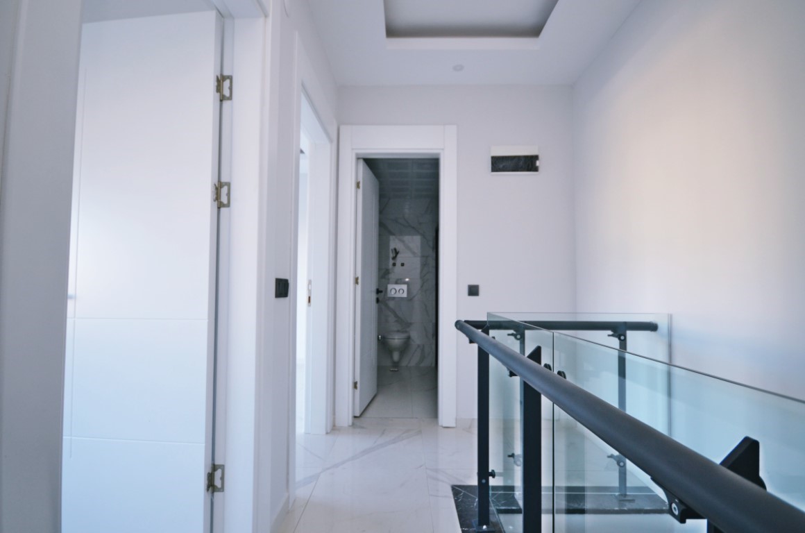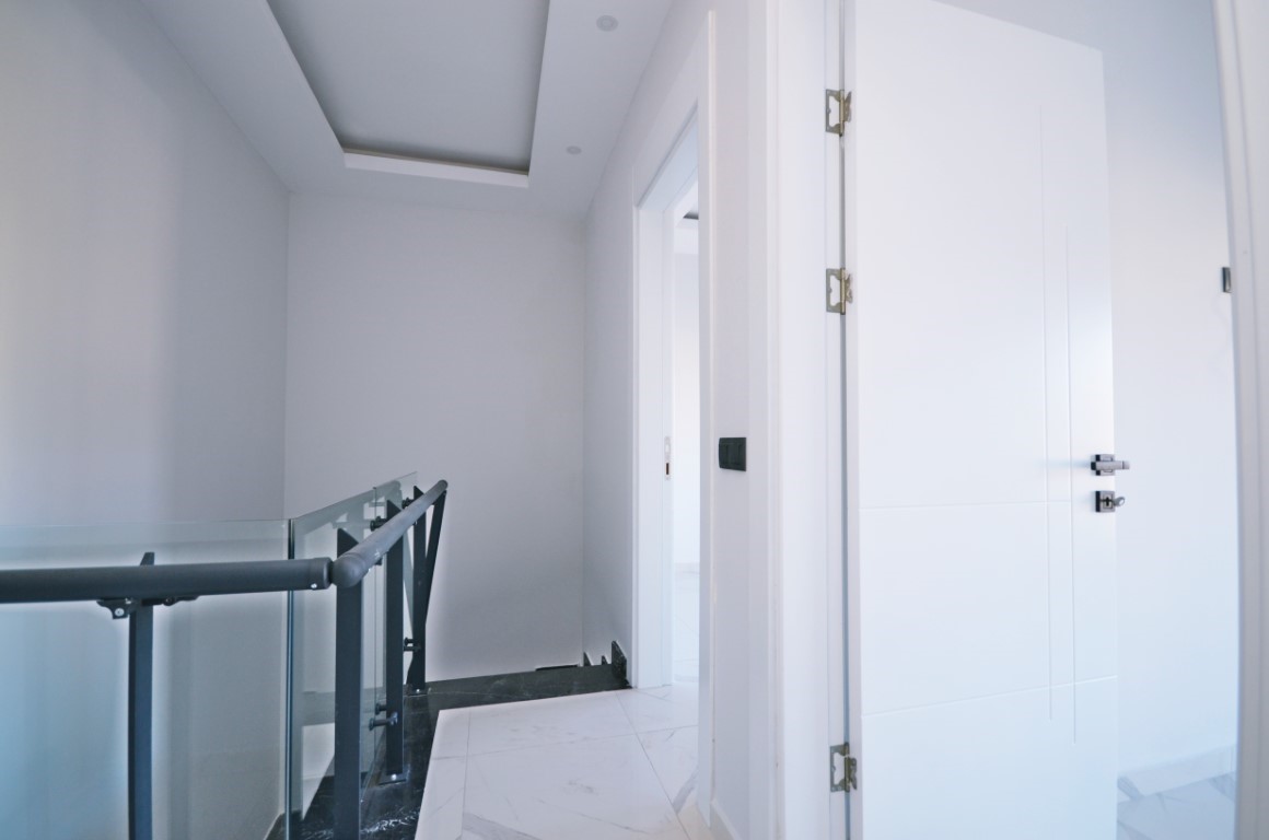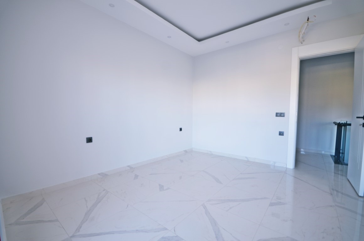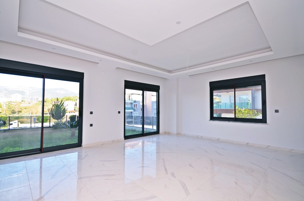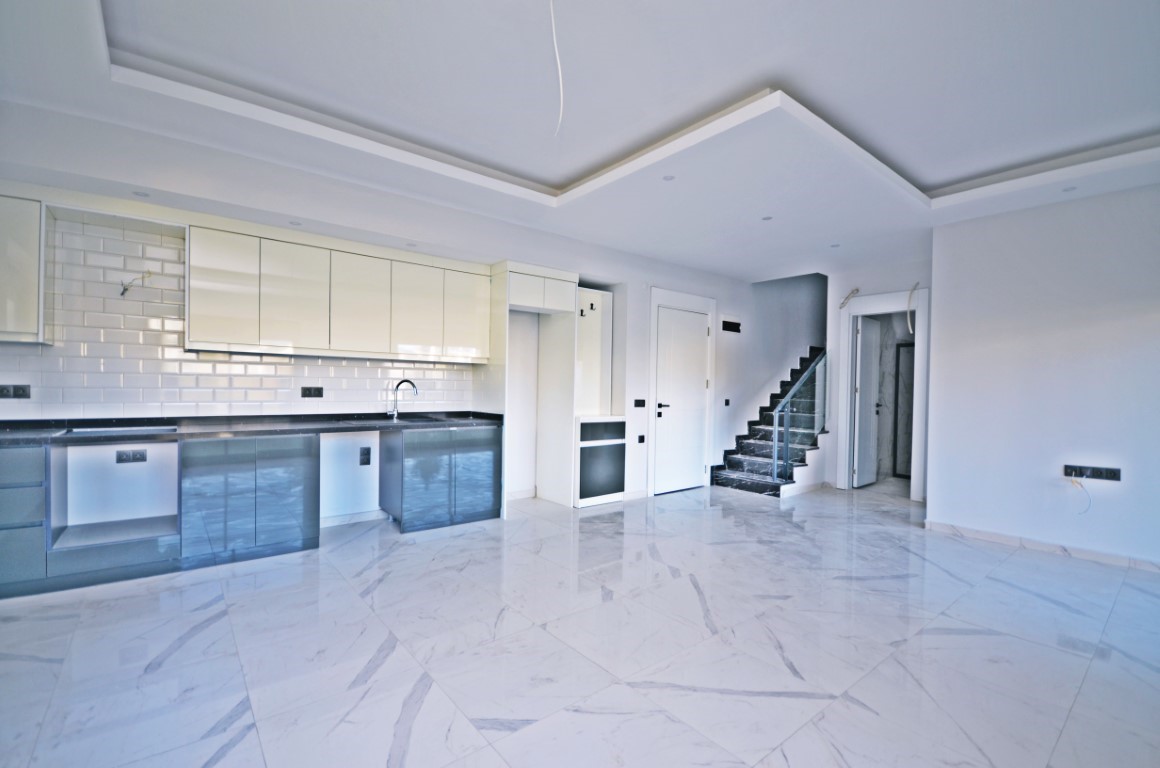 This Kestel garden duplex for sale in Elisya Residence offers family-sized luxury in Alanya’s upscale Kestel district. The 4+1 duplex, spanning 165 m² across the 1st and 2nd floors (unit 4), includes four bedrooms, three bathrooms, four WCs, and two balconies. Direct garden access from the ground floor creates a villa-like feel. The complex features an outdoor pool, sauna, fitness center, barbecue area, kamelya, closed parking, generator, elevator, and 24/7 camera security. Built in 2023.