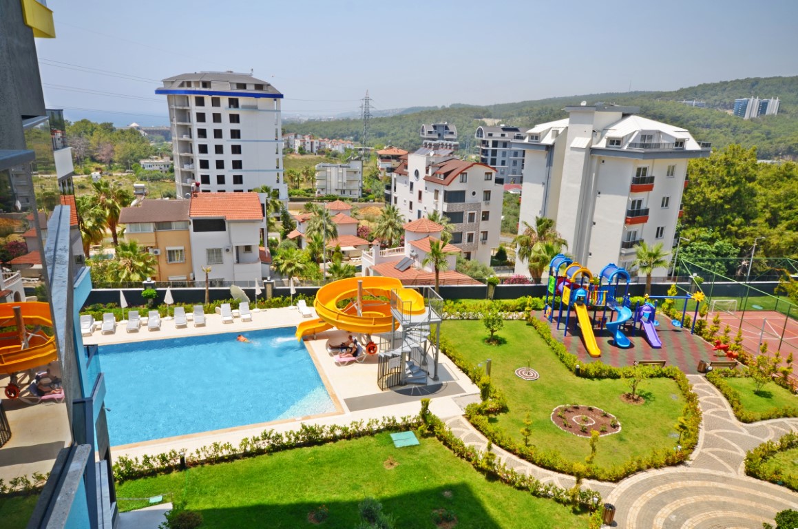 The residence features many premium facilities including outdoor and indoor pools, Turkish bath, sauna, jacuzzi, steam room, fitness center, cinema, football, tennis and basketball areas, children’s playground, kamelya, generator, Wi-Fi, and 24/7 camera security. With only 900 meters distance to the sea and beach pick-up service, this apartment sale in Avsallar stands out as an excellent option in a highly demanded area.