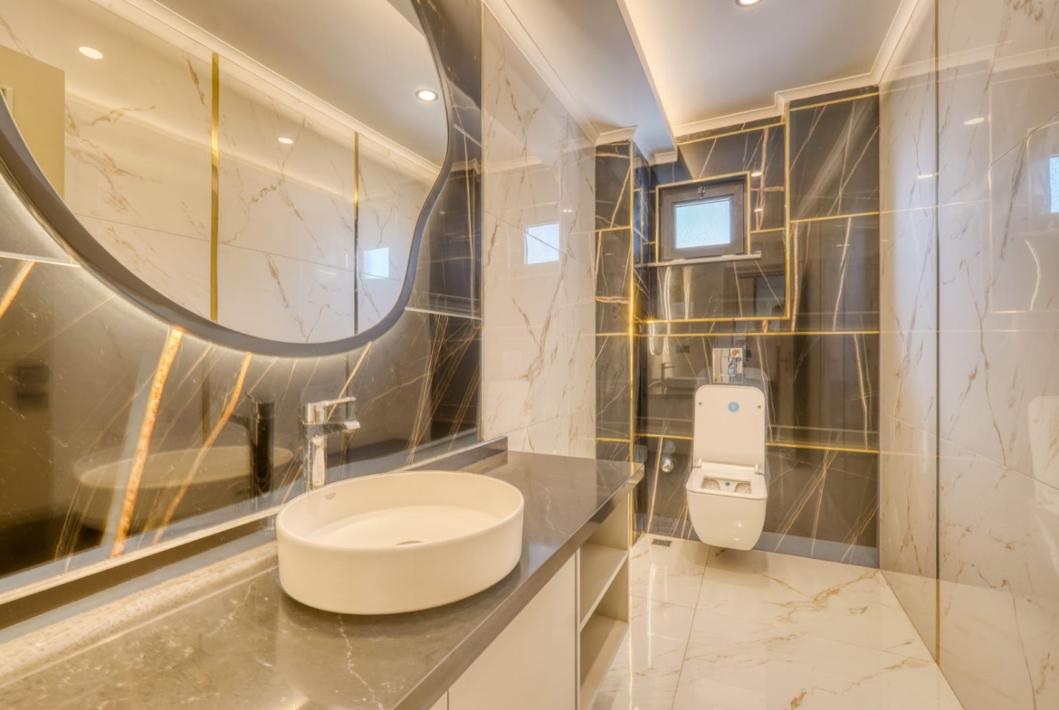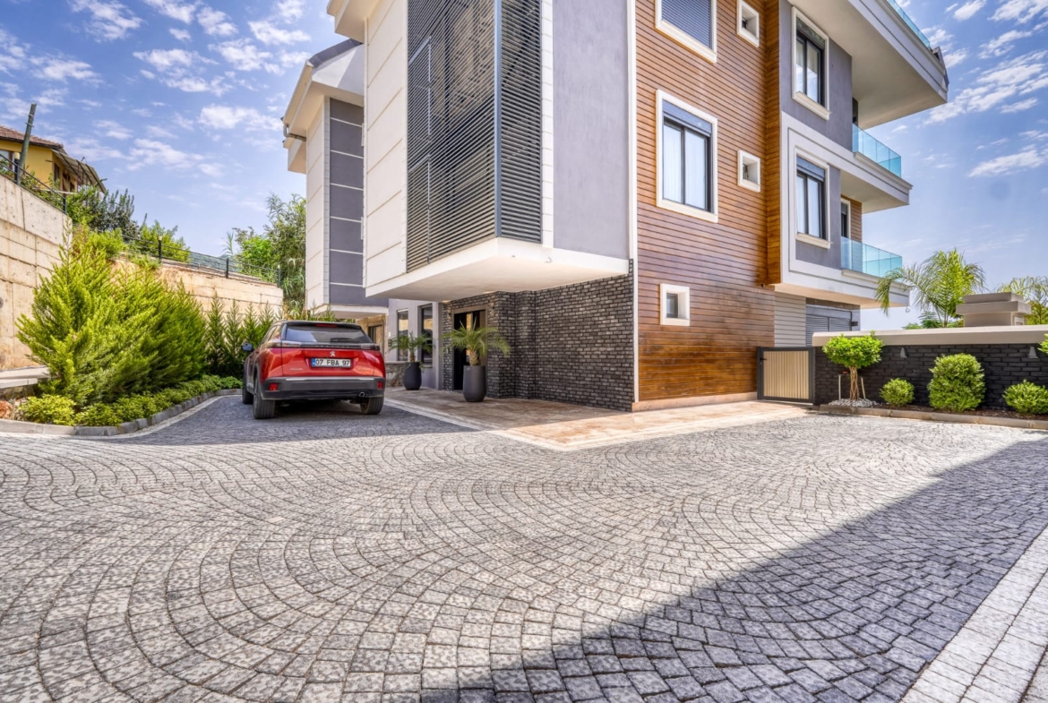 This citizenship villa for sale in Alanya in Tepe Mahallesi offers one of the most impressive detached properties in the area. The 5+2 villa, spanning 450 m² of living space, comes fully furnished with high-quality furniture. It features:
