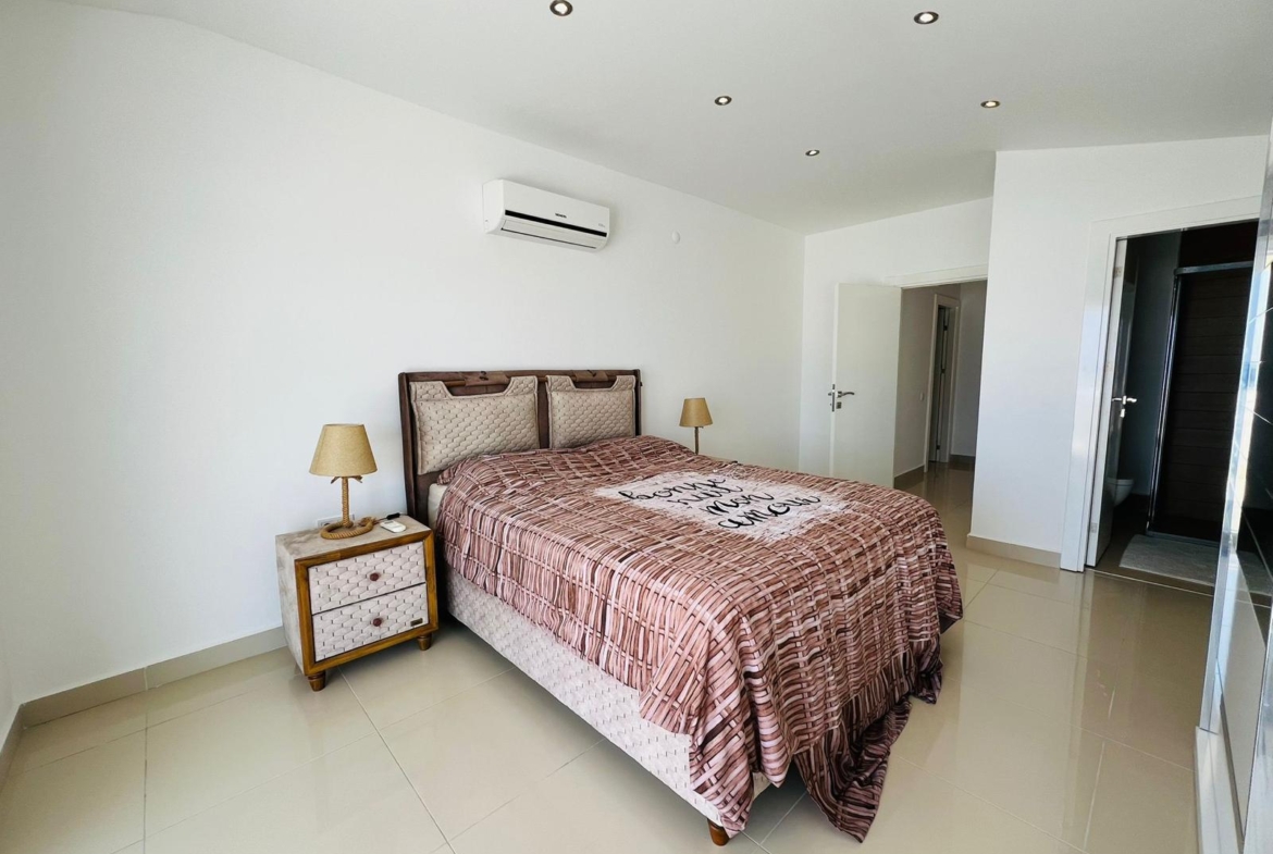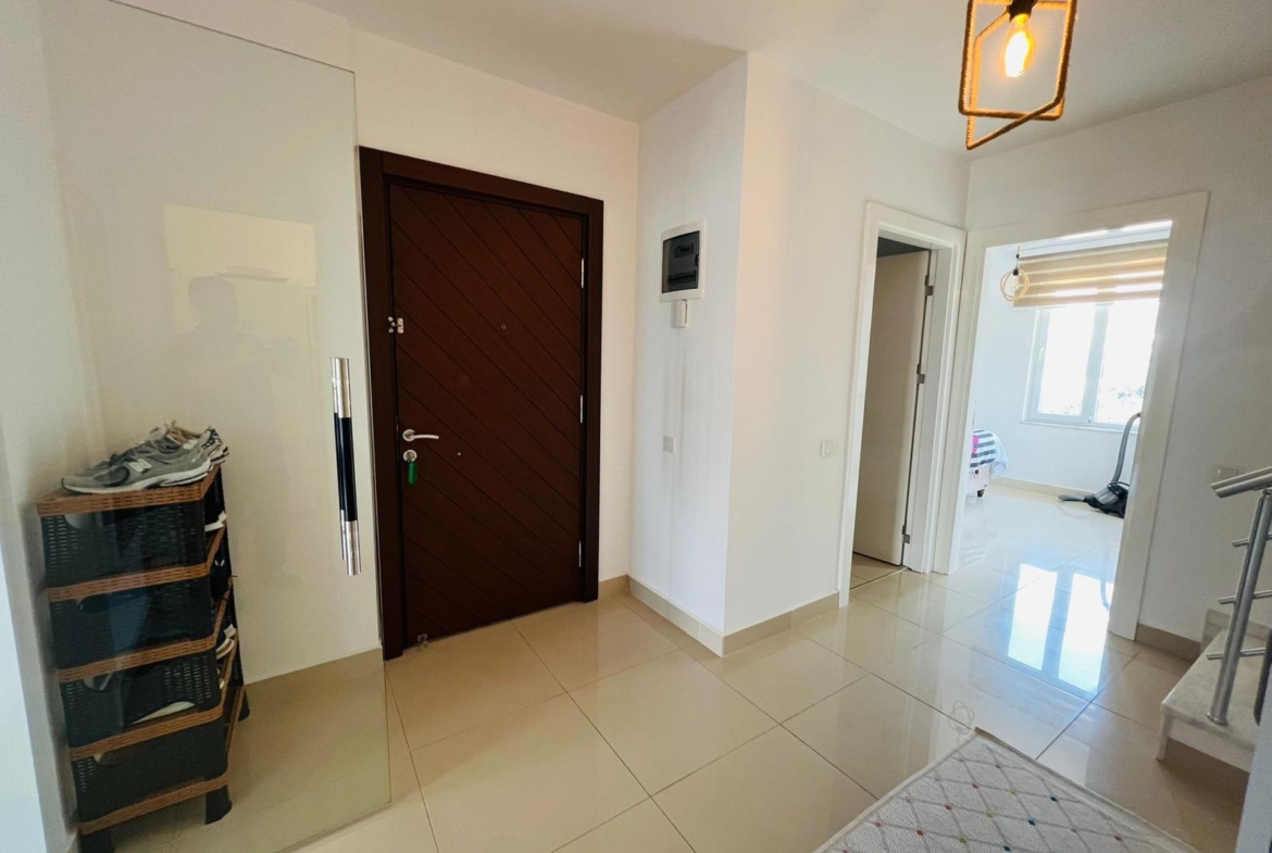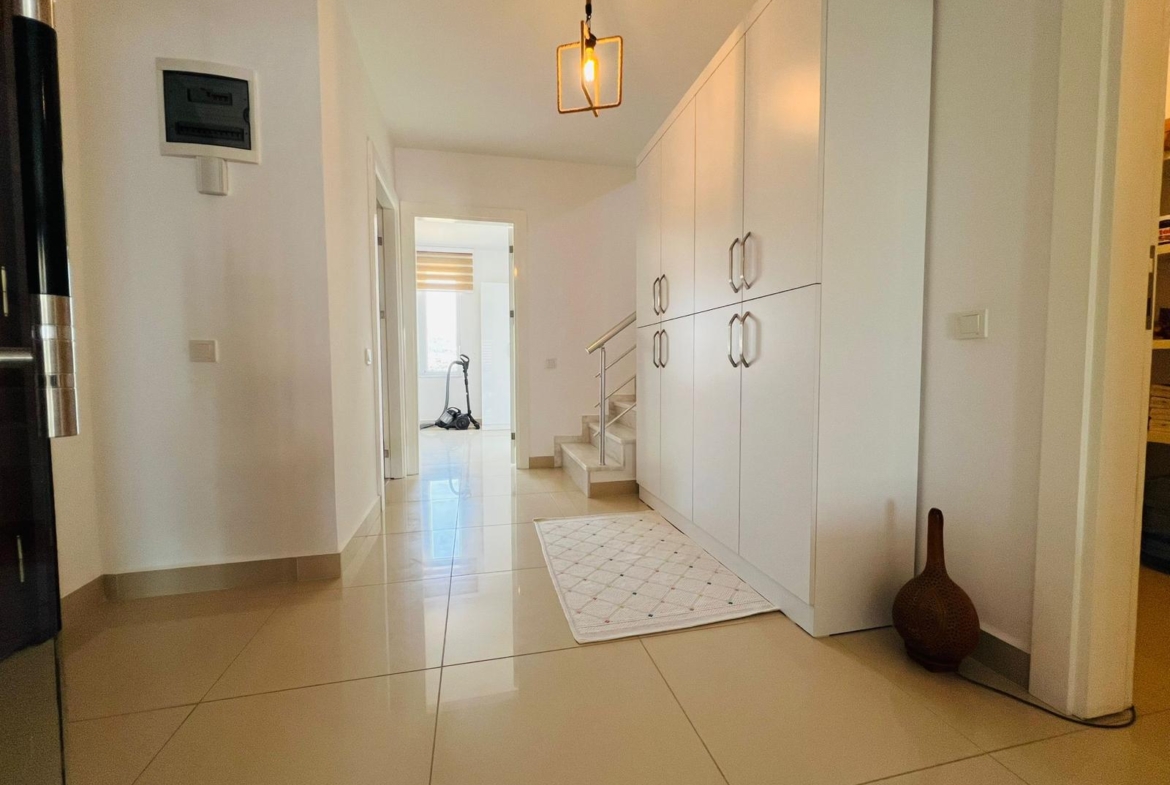 This Demirtaş furnished duplex sale in Fortuna Residence offers luxury in Alanya’s serene Demirtaş Mahallesi. The 3+1 duplex, spanning 145 m² net (155 m² gross), features an American kitchen, three bathrooms, three WCs, and a balcony. Fully furnished with automatic shutters, it excludes the coffee table and personal items. The complex includes open and indoor pools, an aquapark, parking, and a poolside bar. Built in 2023 with an occupancy permit, this Demirtaş furnished duplex sale is 800 meters from the sea. Gazipasa Airport is 15 km away, and Antalya Airport is 160 km.
