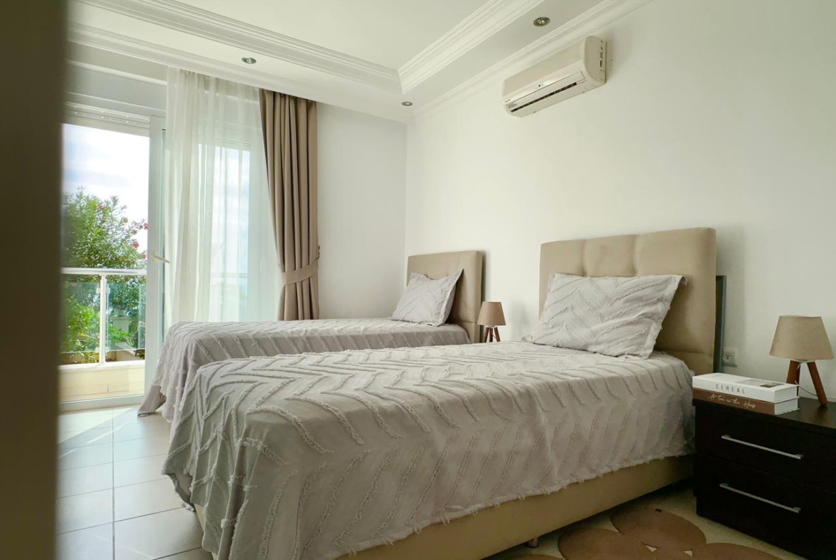 This Dinek sea view apartment for sale boasts a sauna, hammam, and fitness center for relaxation. Enjoy the three pools or unwind in the garden. Moreover, parking and 24/7 security add convenience. Dinek’s tranquil vibe, with nearby shops and cafes, enhances appeal. Perfect for a home or investment, this Dinek sea view apartment for sale combines modern design with coastal charm in Alanya’s peaceful hub.