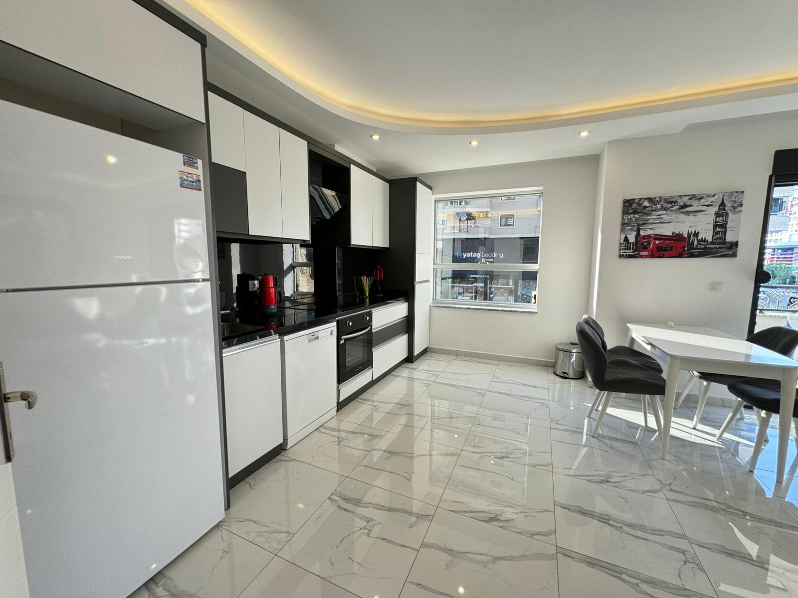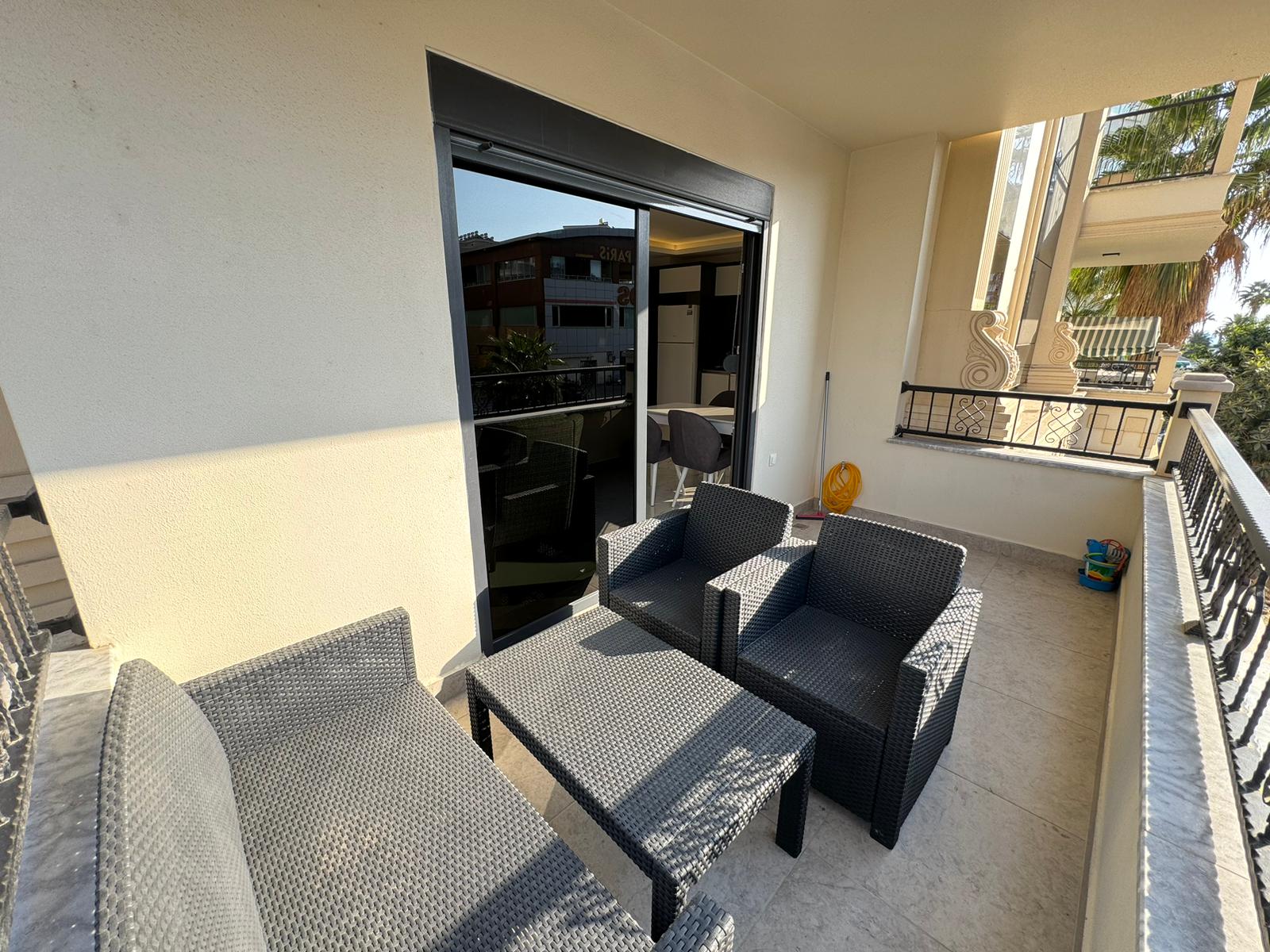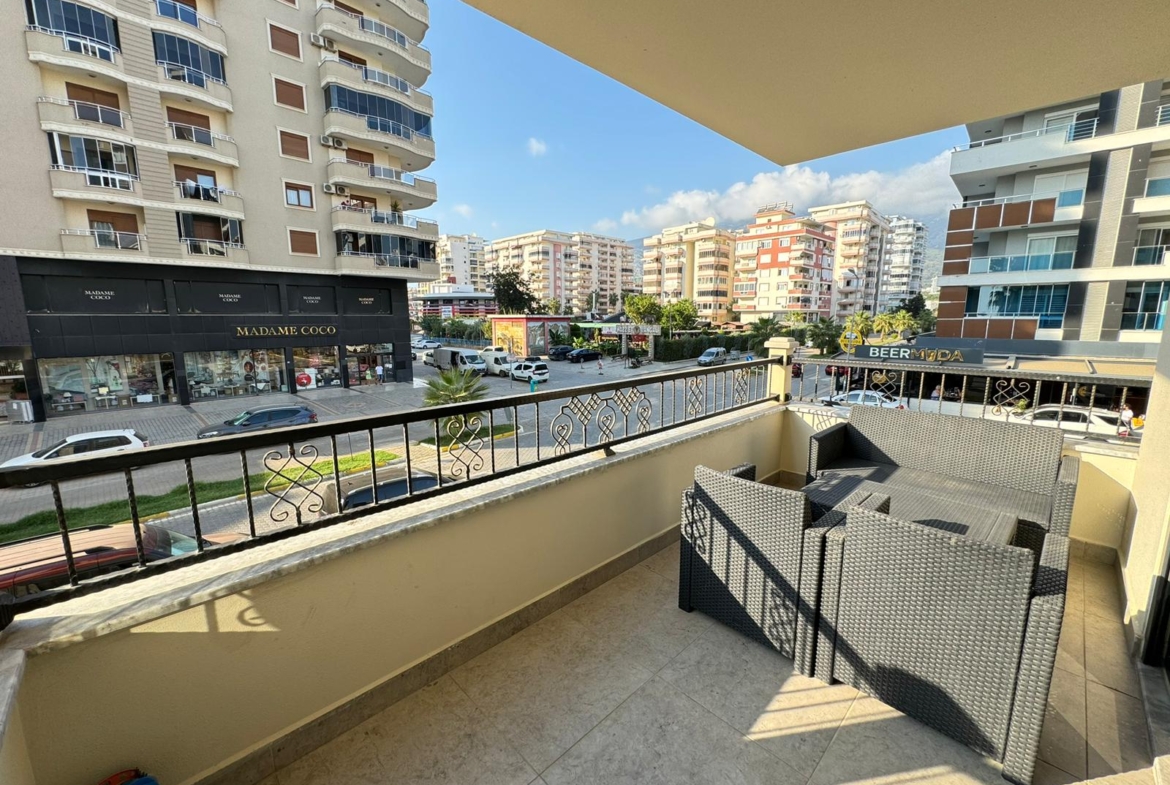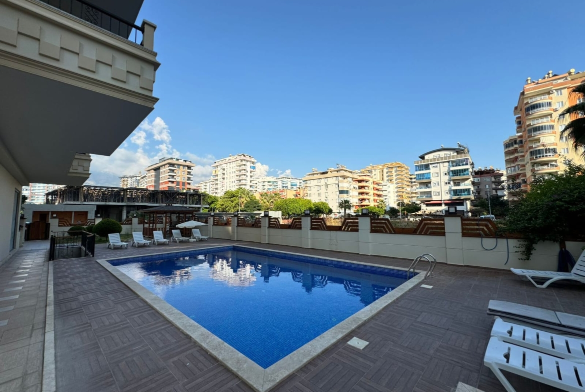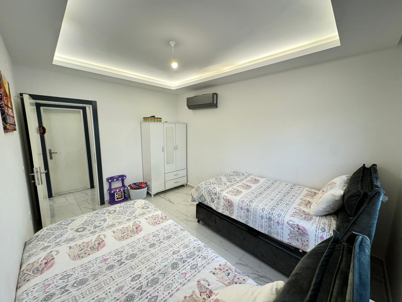 This Flat in Mahmutlar in Citadel Residence offers style in Alanya’s vibrant Mahmutlar district. The 2+1 apartment, spanning 115 m² on the 1st floor, comes fully furnished with new furniture. It features two bedrooms, two bathrooms with toilets, and two balconies. The north, west, and east-facing orientation provides mountain and city views. Newly designed for contemporary living, the complex includes an open pool, sauna, fitness center, children’s playground, garden, barbecue area, table tennis, changing room, steam room, elevator, open parking, and camera system. Built in 2023, this Mahmutlar furnished modern apartment is 200 meters from the sea. Gazipasa Airport is 30 km away, and Antalya Airport is 140 km.