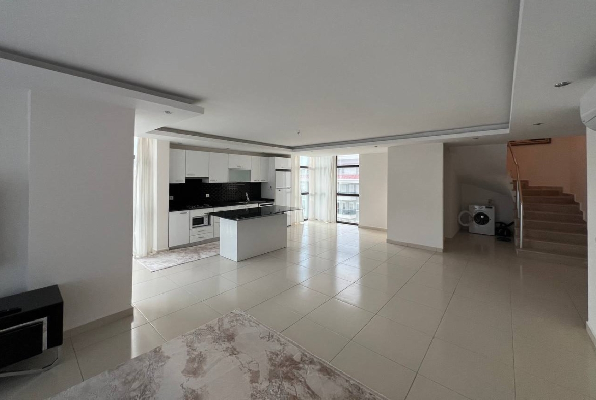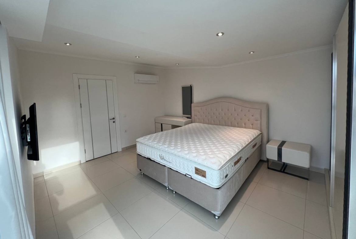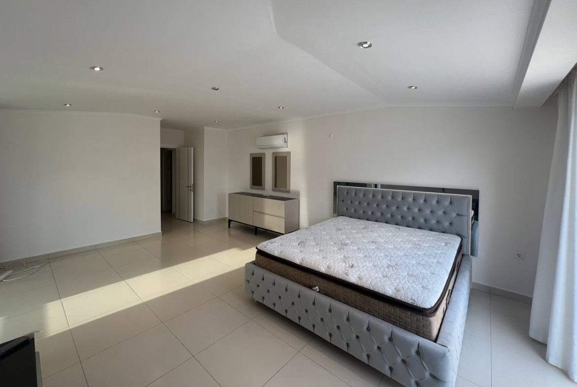 The complex features rich amenities including an outdoor and closed pool, hamam, sauna, fitness center, cinema salon, children’s park, barbecue area, open and closed parking, and 24/7 security. With its large size and prime location, this for sale in Kestel property is ideal for families seeking quality living with beautiful views close to the beach.