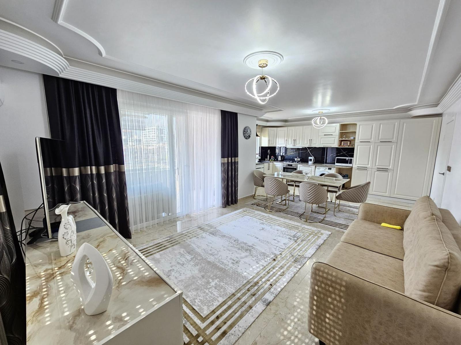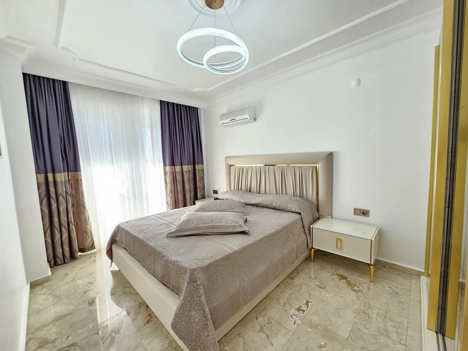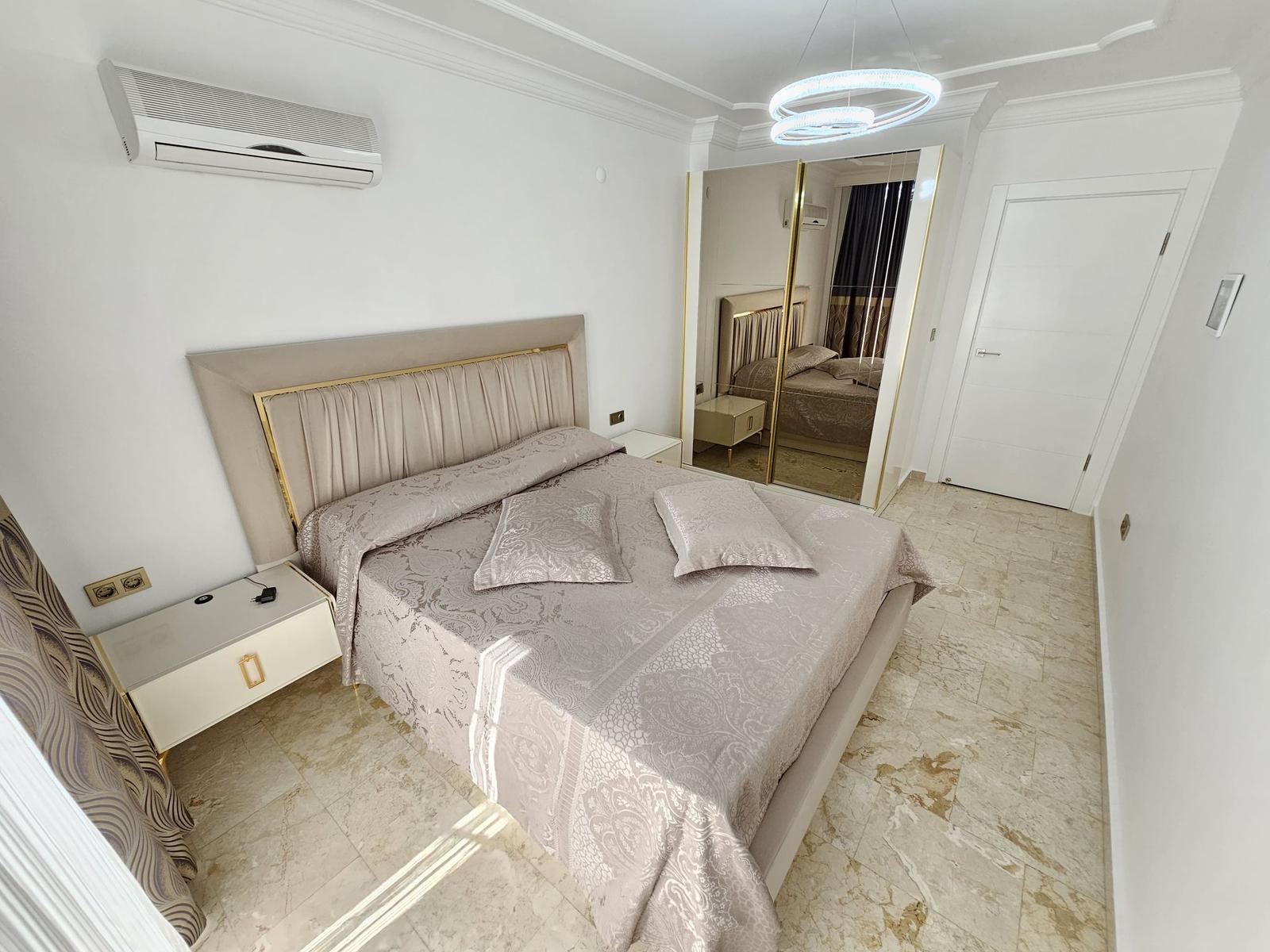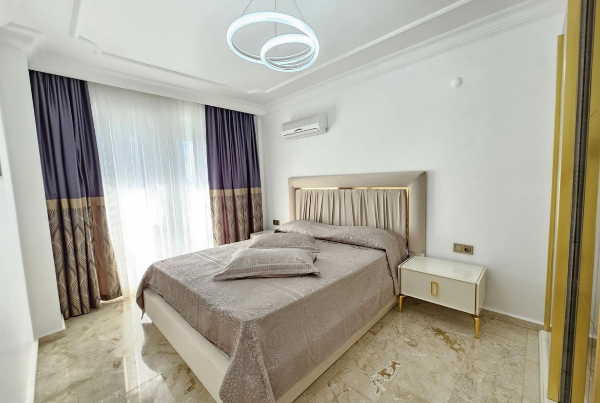 For sale in Mahmutlar, this stunning 2+1 apartment in Goldsun offers 120 m² of coastal luxury. Enjoy two bedrooms, two bathrooms, and three balconies with sea views from every window. Private solar panels heat water efficiently. The super location places you near shops, restaurants, and beaches. Built in 2023, this property for sale in Mahmutlar is just 400 meters from the sea. Gazipasa Airport is 30 km away, and Antalya Airport is 140 km.