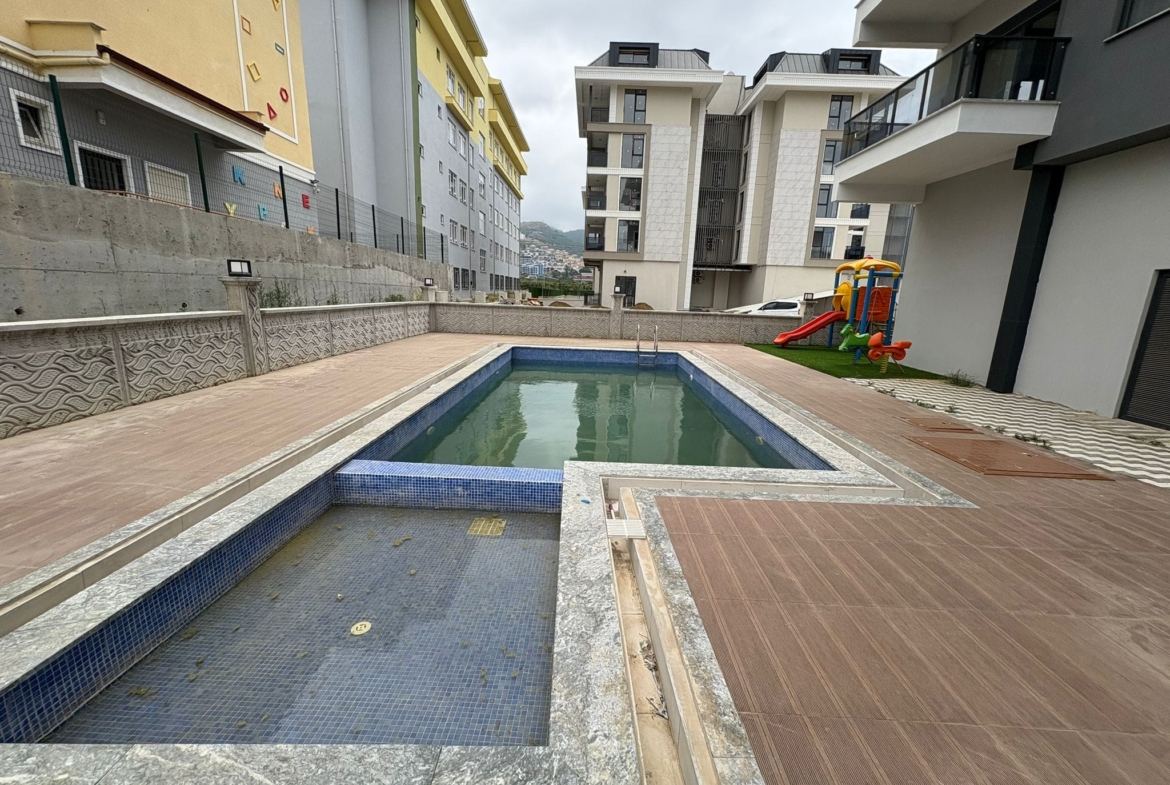 This Kargicak 1 bedroom apartment is located in the modern Kurt Suite 20. The property offers 50 m² of living space on the 3rd floor. It faces north and is in a newly built residence. Facilities include a swimming pool, sauna, fitness center, garden, barbecue area, and generator.