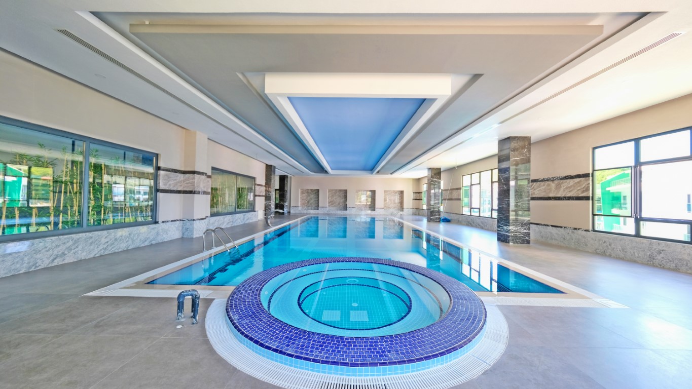 This Kargıcak beachfront luxury apartment boasts a cinema, game rooms, cafe-bar-restaurant, and 24/7 security with cameras. Enjoy open and closed parking, a generator, and a reception. The steam room adds relaxation. Moreover, Kargıcak’s tranquil setting, with nearby shops and cafes, enhances appeal. Perfect for a custom home or investment, this Kargıcak beachfront luxury apartment offers modern design and unmatched beach access in Alanya’s coastal paradise.