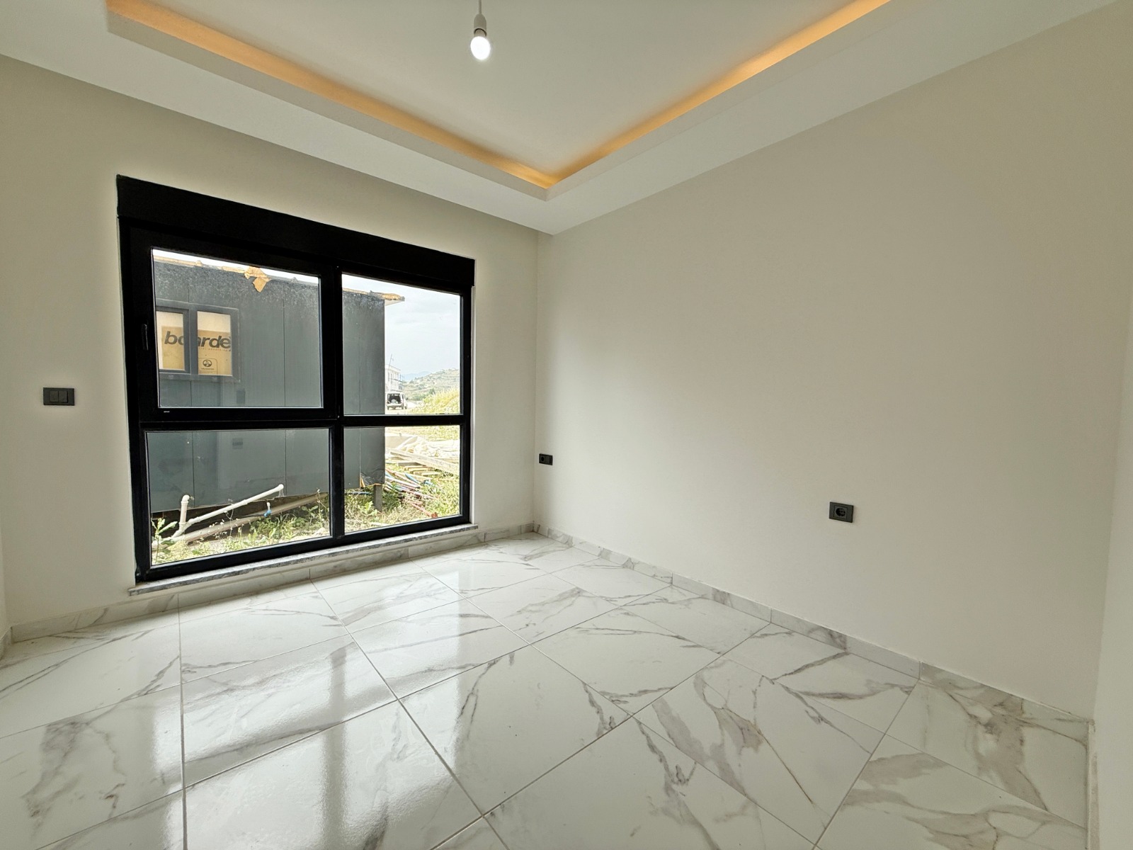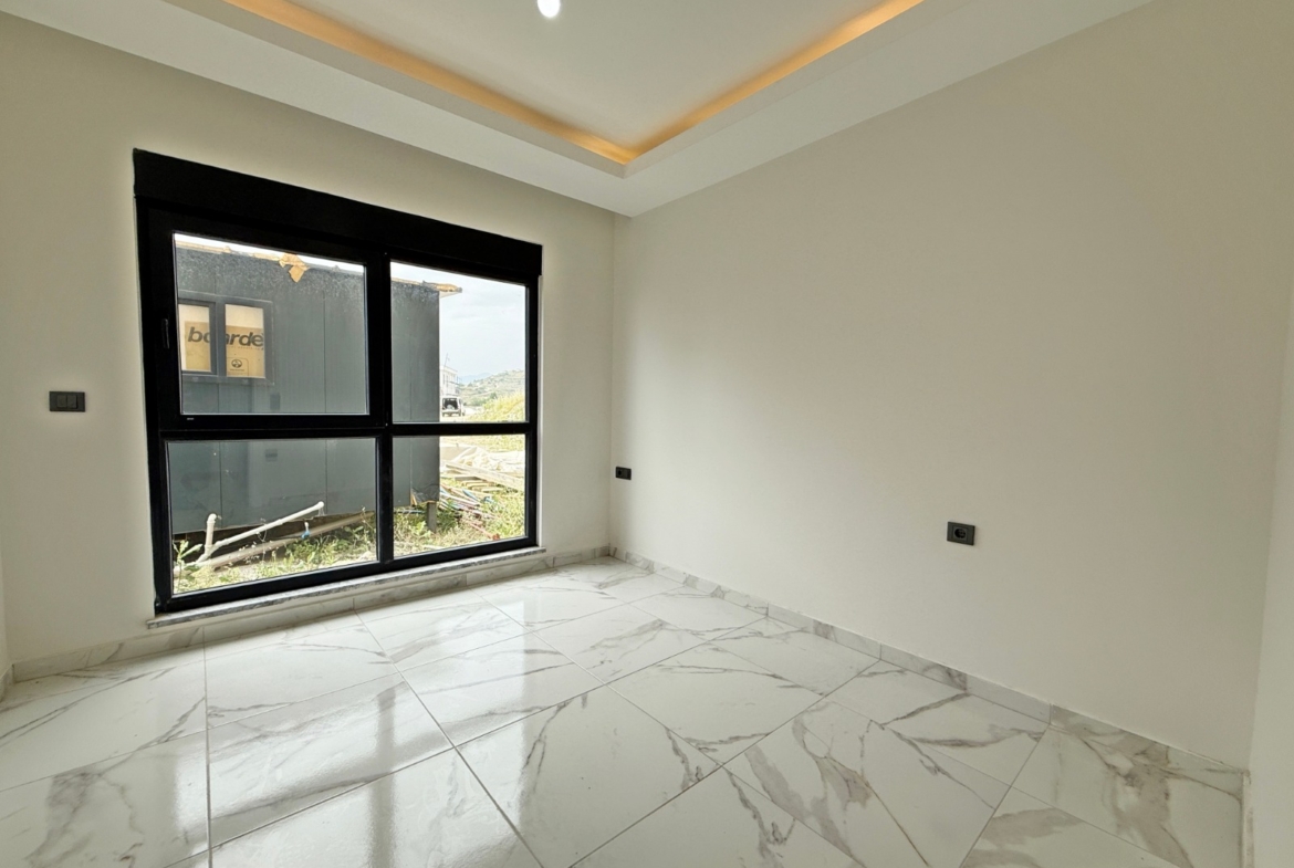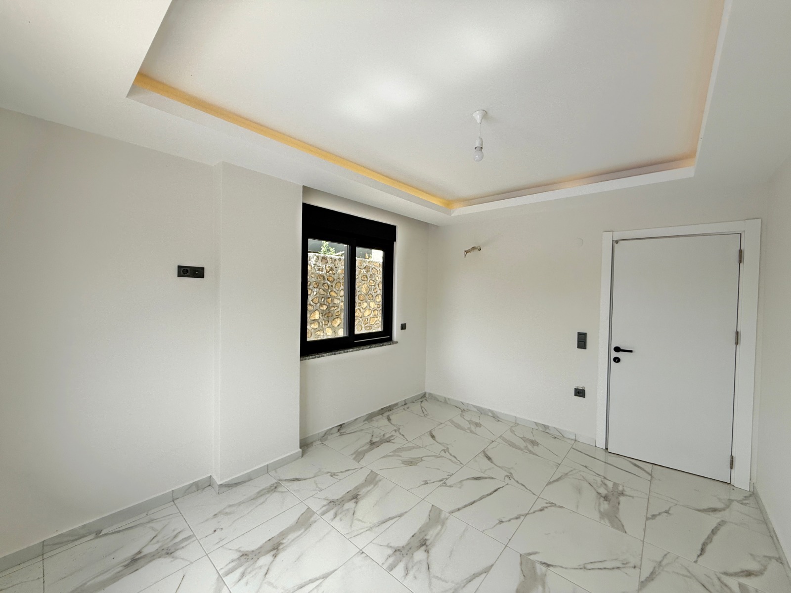 Discover this spacious 3+1 garden duplex located in the prestigious Richmond Villas in Kargıcak. Spread over 115 m² across two floors (1st and 2nd), this unfurnished home offers a bright and airy living space.
