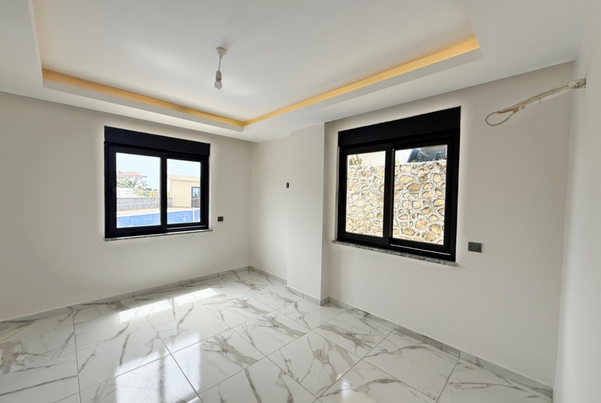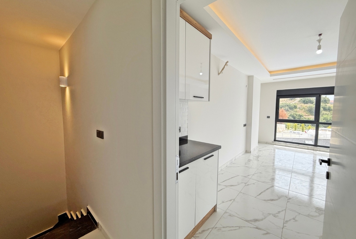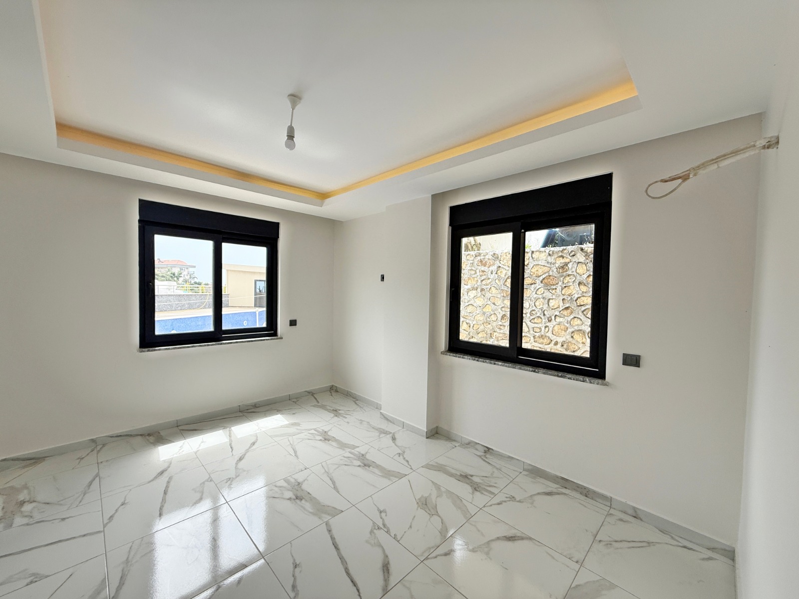 Discover this spacious 3+1 garden duplex located in the prestigious Richmond Villas in Kargıcak. Spread over 115 m² across two floors (1st and 2nd), this unfurnished home offers a bright and airy living space.