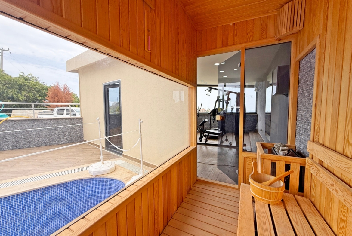 The residence features a swimming pool, sauna, fitness center, and open parking. Situated just 2.5 km from the sea, it offers both comfort and privacy. Title deed and occupancy permit are ready, making it an excellent investment or permanent home.