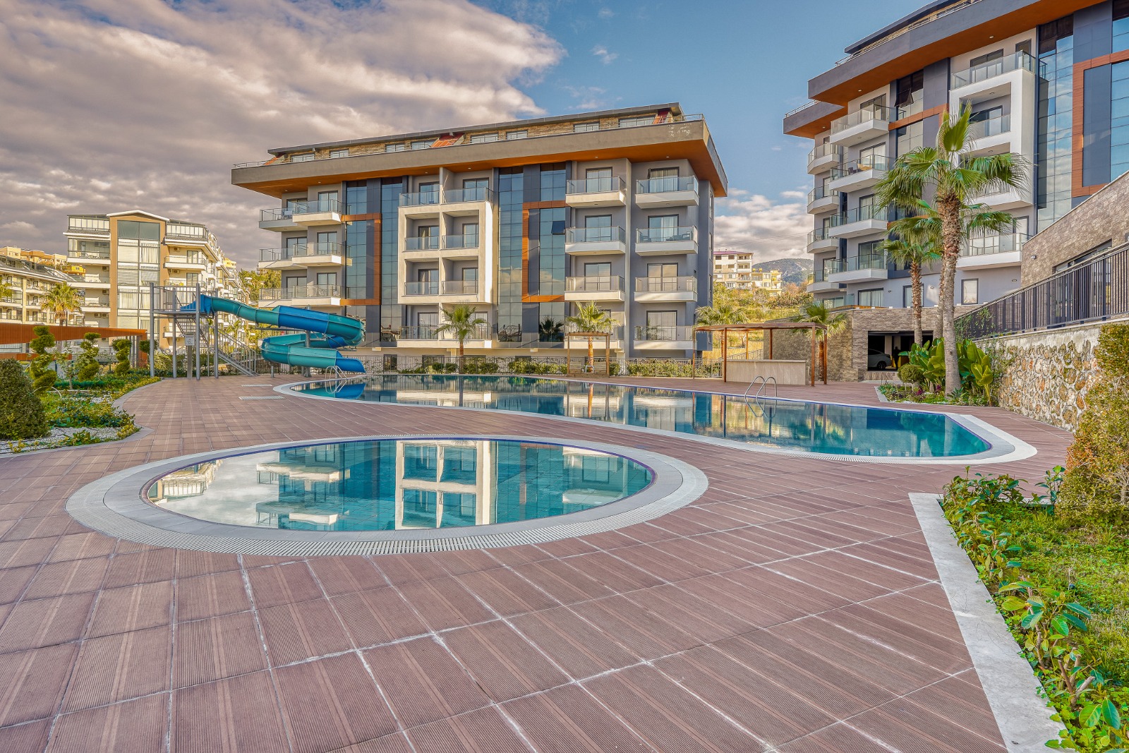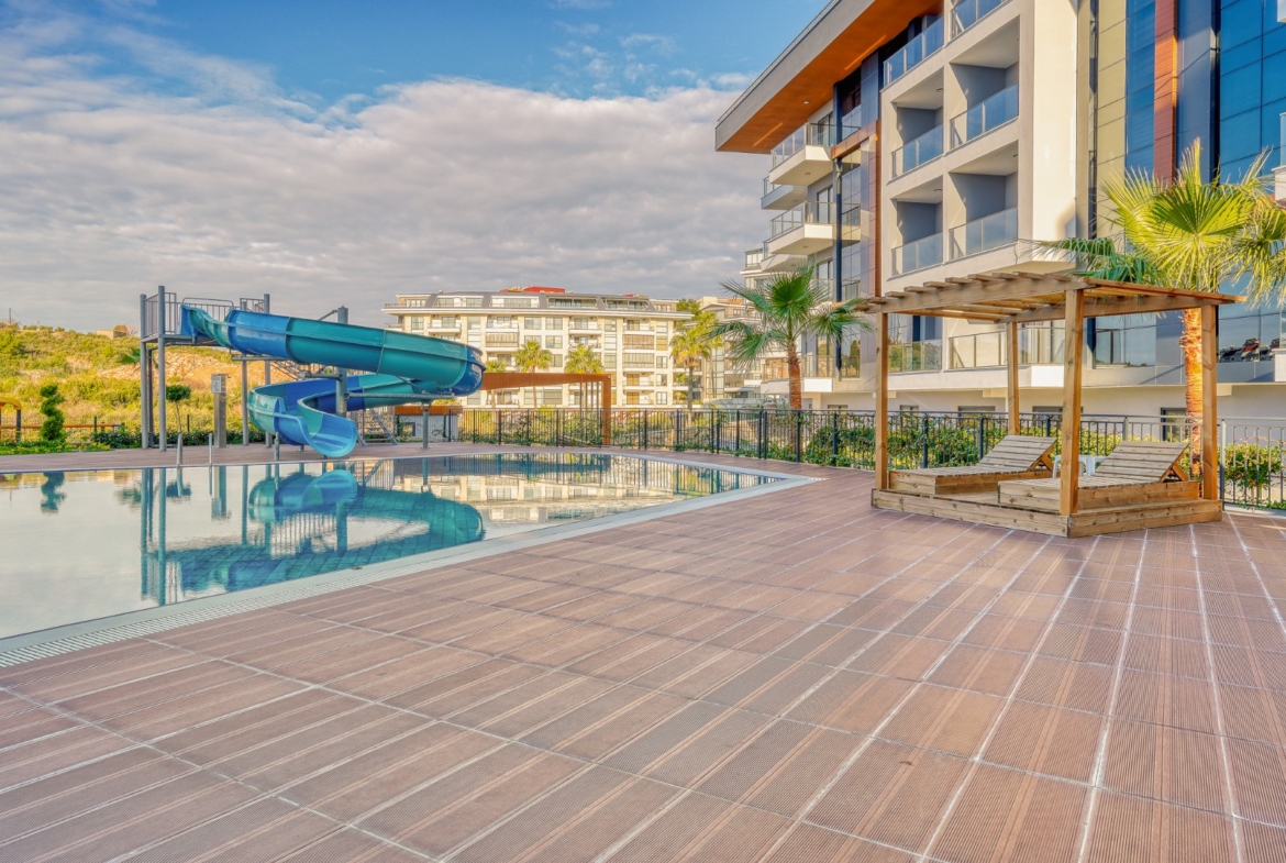 This Kestel apartment for sale in Sea Pearl Sky offers easy access and modern comfort in Alanya’s serene Kestel district. The 1+1 apartment, spanning 46 m² on the 1st floor (ground level), comes fully furnished. It features one bedroom, one bathroom with WC, and a balcony. The complex includes open & indoor swimming pools, fitness center, hammam, sauna, massage room, children’s playground, basketball/tennis courts, kamelya, cafe, closed parking, and 24/7 security. Built in 2023.