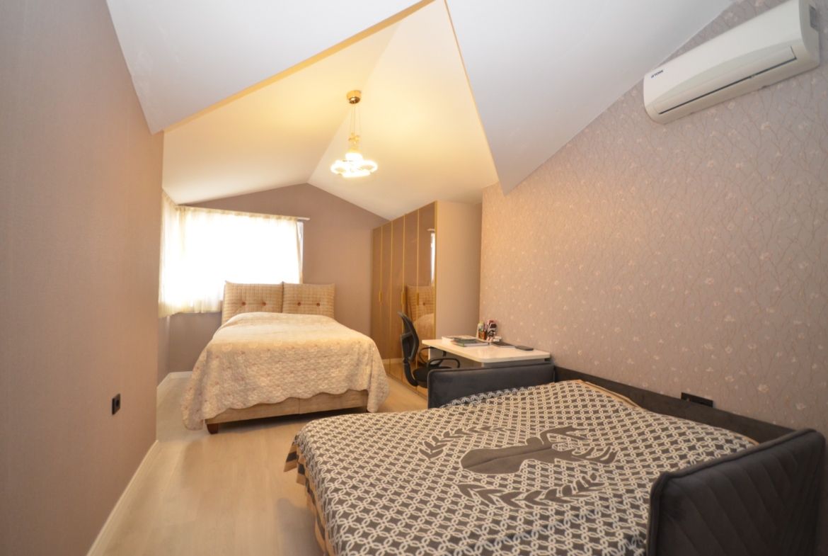 This Kestel unfurnished duplex sale in Ofkale offers luxury in Alanya’s serene Kestel district. The 4+1 duplex, spanning the 4th and 5th floors, includes four bedrooms, a living room, and modern interiors. It’s unfurnished, ready for your personal touch. The complex features a swimming pool, fitness center, and kamelya for relaxation. Built in 2023, this Kestel unfurnished duplex sale is just 100 meters from the sea. Gazipasa Airport is 30 km away, and Antalya Airport is 130 km.