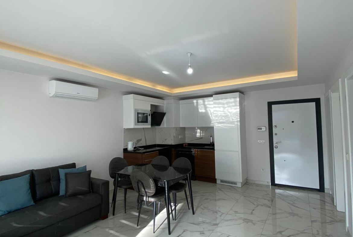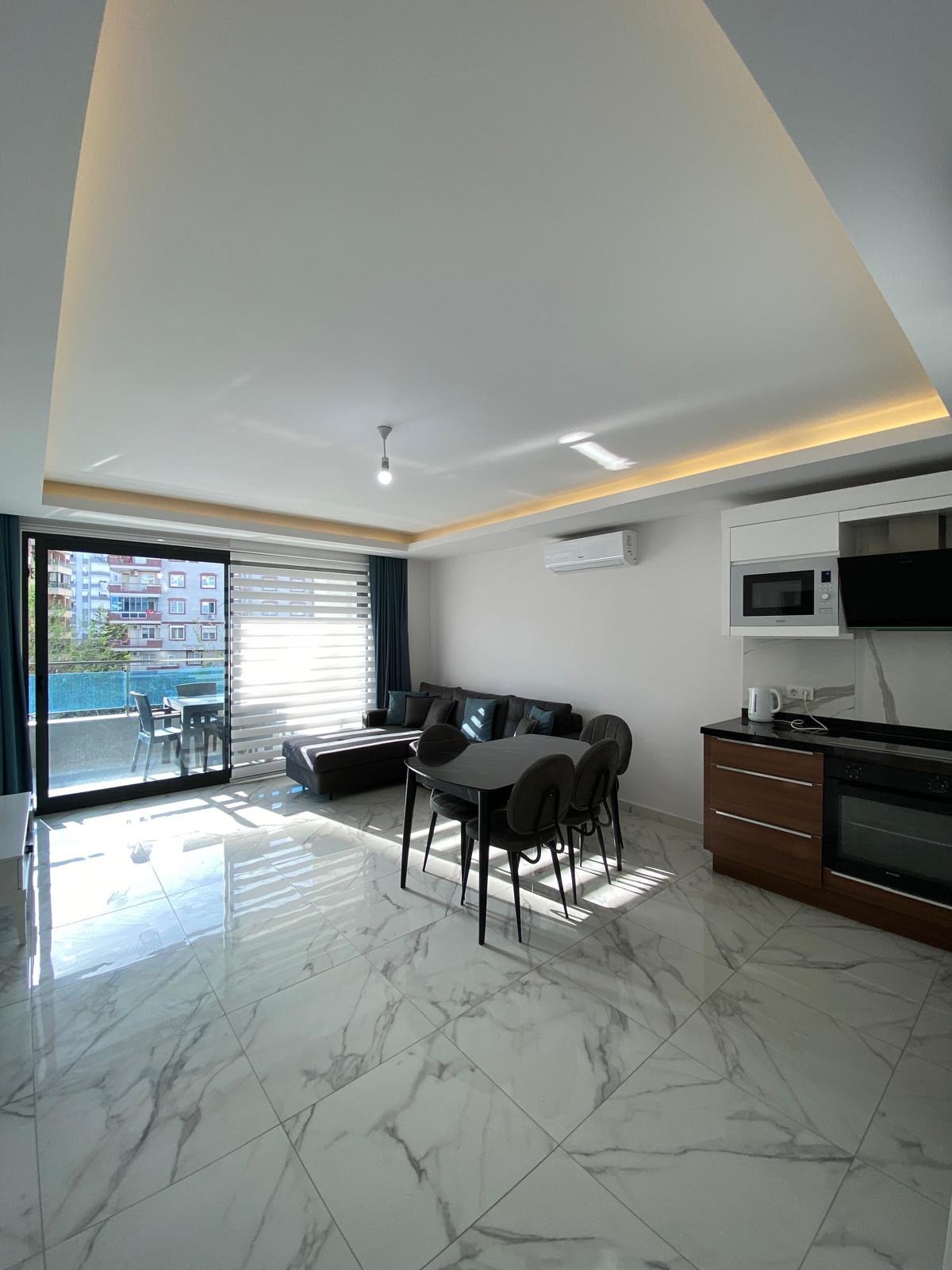 This Kleopatra furnished pool view apartment in Elite Marine 2 offers comfort in Alanya’s central Kleopatra district. The 1+1 apartment, spanning 65 m² on the 2nd floor, comes fully furnished. It features one bedroom, one bathroom with WC, and a west-facing balcony overlooking the pool. Built in 2021, the complex includes an open pool, jacuzzi, sauna, fitness center, lobby, barbecue area, kamelya, children’s room, table tennis, and generator. This Kleopatra furnished pool view apartment is 850 meters from the sea. Gazipasa Airport is 40 km away, and Antalya Airport is 125 km.