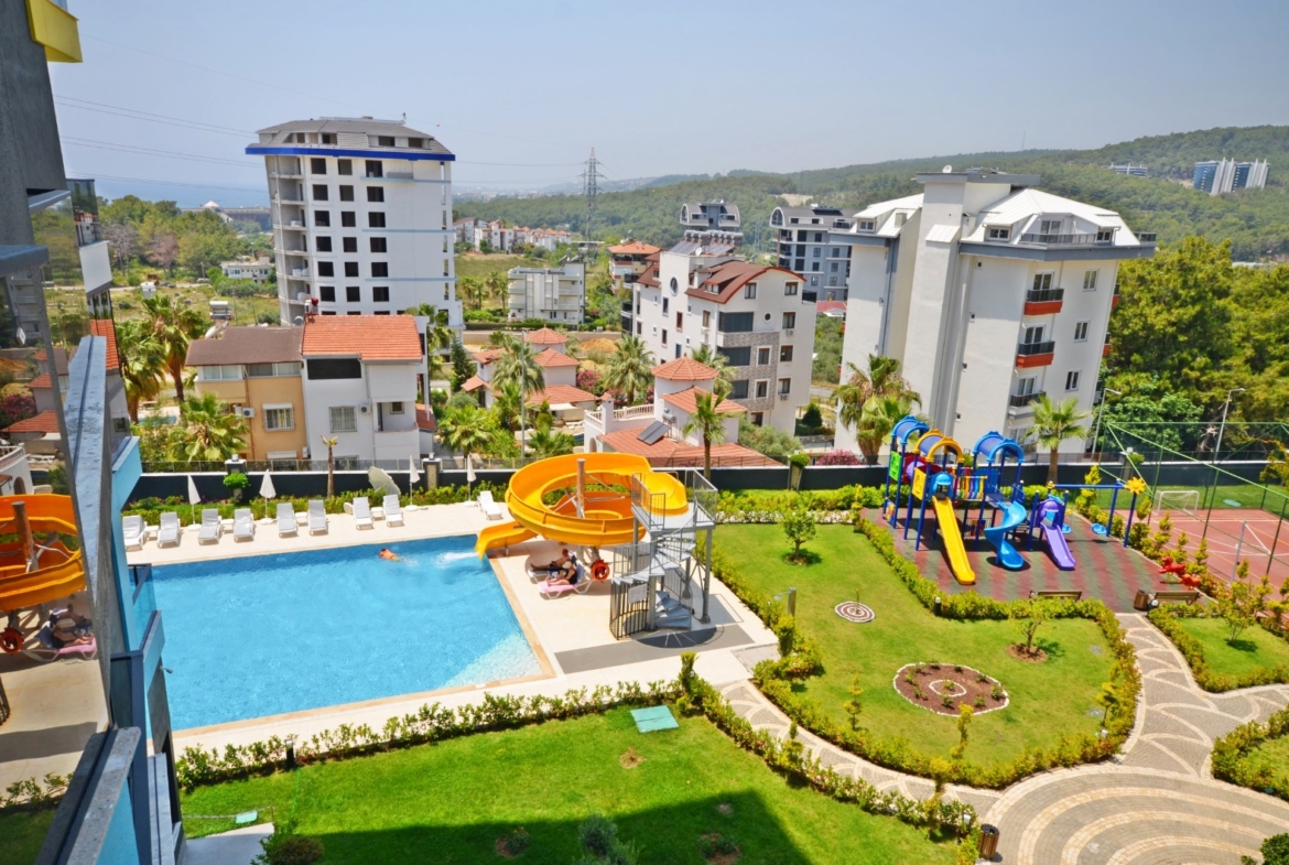 Explore Avsallar’s Luxury Apartment with Great Amenities! This stunning 1+1 fully furnished apartment located in Avsallar at Pine Garden, No: 28. Situated on the second floor, the apartment spans 60 sqm and boasts breathtaking sea and pool views. It features one bathroom, one WC, and a delightful balcony, perfect for enjoying the scenery. Residents have access to a range of amenities, including both outdoor and indoor pools, a traditional Turkish bath, sauna, jacuzzi, and steam room for relaxation. Stay active with a well-equipped fitness center, as well as sports facilities such as football, tennis, and basketball courts. Families will appreciate the children’s playground and kamelya. Additional conveniences include a generator, Wi-Fi, and 24/7 security with camera surveillance. Luxury Apartment with Great Amenities located just 900 meters from the beach, with a pick-up service available for easy access to the shore, this apartment is an ideal retreat.