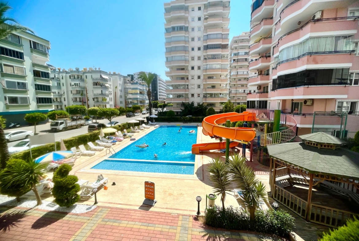 This Mahmutlar beachfront apartment sale in the Cebeci 7 complex is just 200 meters from the Mediterranean in Alanya’s vibrant Mahmutlar district. The fully furnished 2+1 apartment, spanning 120 m² on the 1st floor, features two bedrooms, one living room, two bathrooms, two balconies, and a storage pantry. Its south-facing orientation brings in plenty of sunlight. Moreover, Cebeci 7 offers a pool with aqua features, tennis and basketball courts, a children’s playground, a garden, a barbecue area, and an on-site caretaker. Built in 2018, this Mahmutlar beachfront apartment sale sits steps from shops, cafes, and restaurants. Gazipasa Airport is 30 km away, and Antalya Airport is about 140 km. Perfect for a home, vacation spot, or investment, this Mahmutlar beachfront apartment sale blends modern comfort with coastal charm.