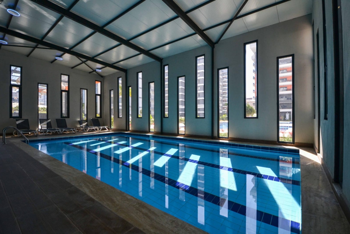 This Mahmutlar furnished modern apartment boasts a gym, billiard table, table tennis, and children’s game room. Enjoy parking, bicycle parking, and a generator. Moreover, 24/7 security ensures safety. The complex offers a restful vibe with nearby shops and cafes. Perfect for a home or investment, this Mahmutlar furnished modern apartment combines luxury and convenience. Its modern design and coastal proximity make it a top choice in Alanya.