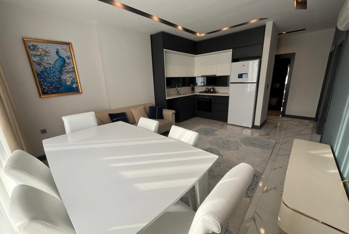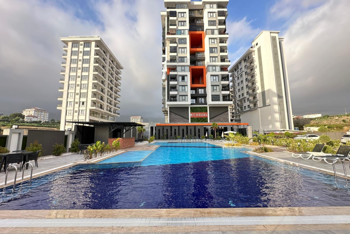 This Mahmutlar furnished modern apartment in Güzel 2000 Rezidans offers comfort in Alanya’s lively Mahmutlar district. The 2+1 apartment, spanning 100 m² on the 2nd floor, comes fully furnished. It features two bedrooms, one bathroom, and a south-facing balcony. Just 650 meters from the sea, it’s ideal for beach lovers. The complex includes open and indoor pools, a children’s pool, sauna, steam room, and salt room. Built in 2023, this Mahmutlar furnished modern apartment is near Gazipasa Airport (30 km) and Antalya Airport (140 km).
