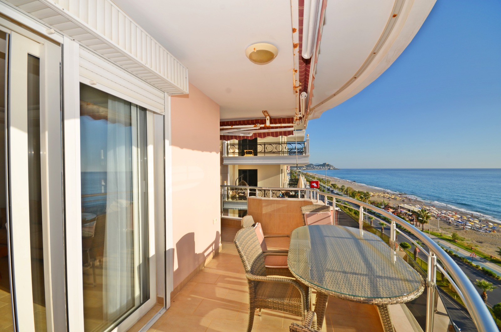 This Mahmutlar high floor sea view apartment in Alden 3 Residence offers luxury in Alanya’s vibrant Mahmutlar district. The 2+1 apartment, spanning 125 m² on the 7th floor, comes fully furnished. It features two bedrooms, two bathrooms, two WCs, two balconies, and a cellar room for extra storage. Enjoy breathtaking full sea and castle views. The complex includes an open pool, aqua park, fitness center, sauna, children’s playground, barbecue area, and kamelya. Built in 2023, this Mahmutlar high floor sea view apartment is beachfront with an underpass to the sea. Gazipasa Airport is 30 km away, and Antalya Airport is 140 km.