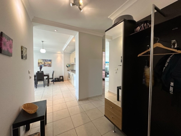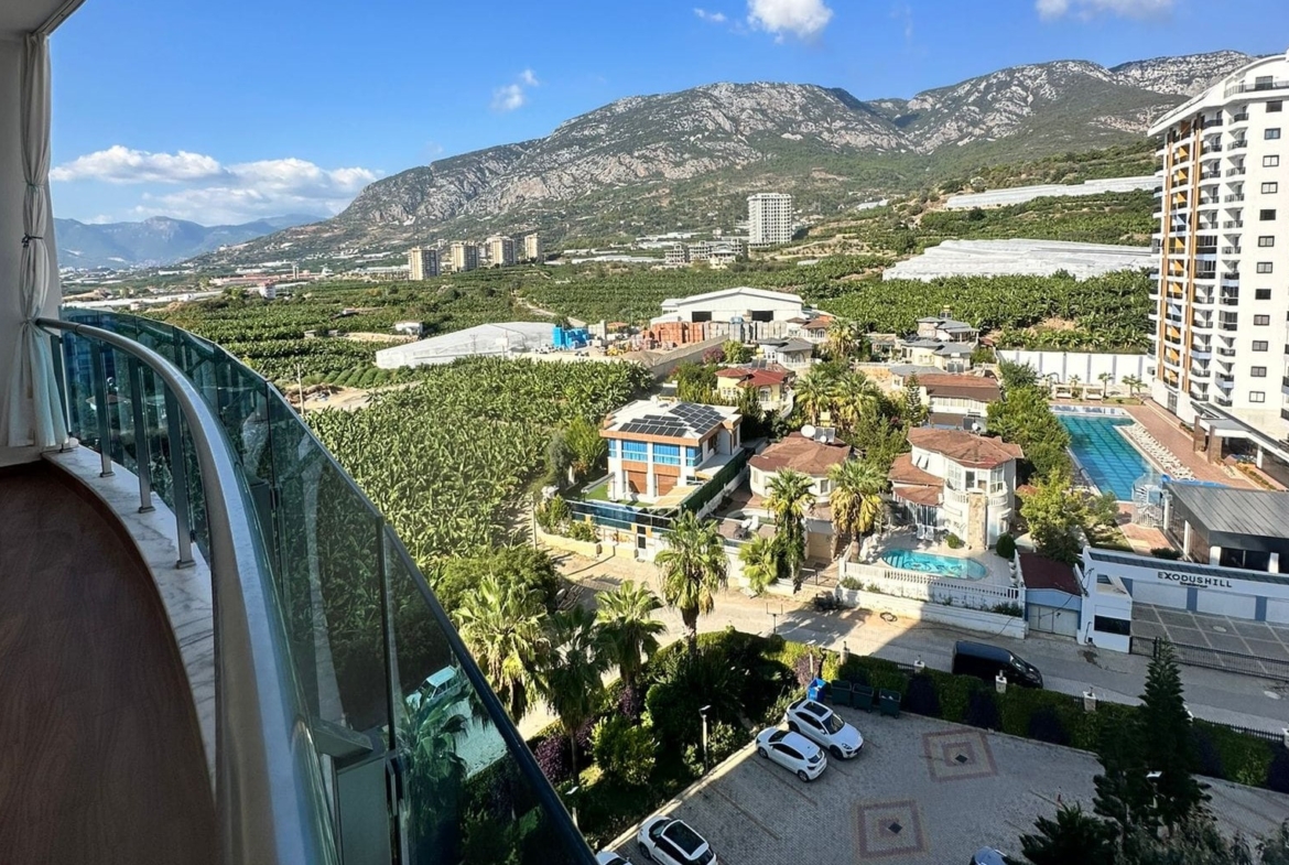 Urgent furnished apartment for sale in Mahmutlar – This urgent furnished apartment for sale in Mahmutlar is located in the prestigious Azura Park Residence, offering a luxury hotel-style living experience. The 1+1 unit is 70 m² and situated on the 8th floor. It comes fully furnished and offers a beautiful mountain view, providing a peaceful environment close to nature.
