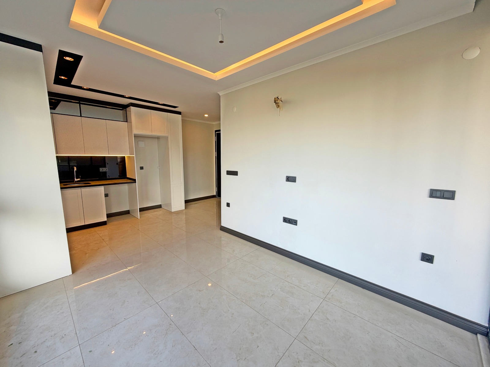 Эта квартира на первом этаже продаётся в Махмутларе, в Хасбахче Милано, VIP 1 Residence, предлагает удобное проживание в популярном районе Махмутлар в Аланье. Квартира 1+1, занимающая 50 м² на первом этаже (первый этаж), не обставлена — идеально подходит для индивидуального оформления. В нем есть одна спальня, одна ванная комната с туалетом и балкон. Комплекс включает открытый бассейн, джакузи, фитнес-центр, парную, игровую комнату, садовую зону, детскую игровую зону, зону для барбекю, камелью, лифт, парковку, генератор и круглосуточную охрану. Построен в 2023 году.